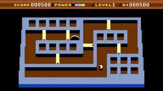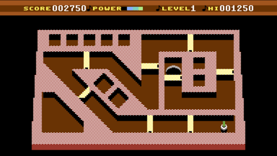 Viewed from above, the task in Tilt is to rotate the screen so as to guide a ball across a maze into a hole. Unfortunately, if the ball hits any of the walls en route you have to start again, which means that the energy used on the previous tilts is wasted (and you only have a limited amount). There are a number of gates on each screen, which you must open by pressing the fire button at the right moments. As the game progresses the ball gradually gets bigger, giving you less margin for error on maneuvering it. There are also traps to avoid - these are active if the maze isn't tilting, so you'll have to keep it moving.