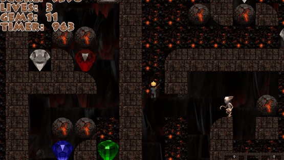 Rocka Feller - a striking new take on classic 'rocks and gems' action-puzzle gaming, in the vein of such yesteryear greats as Boulderdash and Repton. Dig for the diamonds, rubies, sapphires and emeralds; take care with the boulders and beware the cave critters.