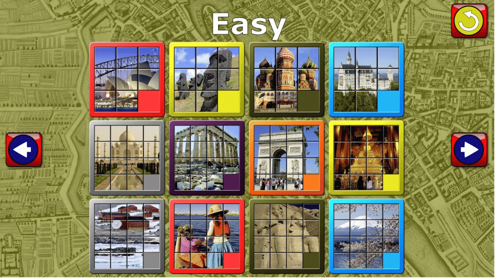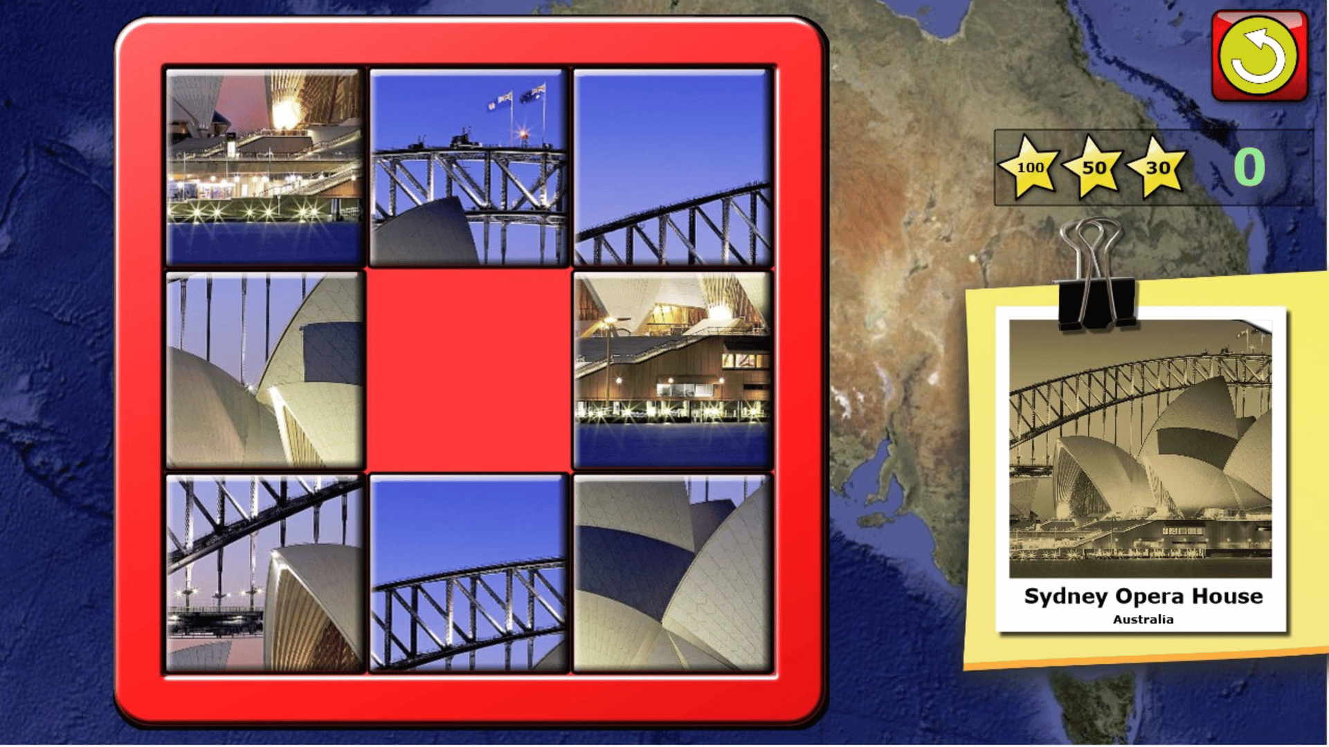 Explore beautiful and famous scenes from around the world in this modern version of the traditional sliding puzzle game. Players rearrange square tiles to form complete images using logic and strategy. Known also as the 15-puzzle, Gem Puzzle, Boss Puzzle, or Mystic Squares, this game offers increasing difficulty levels and stunning visuals across global locations.