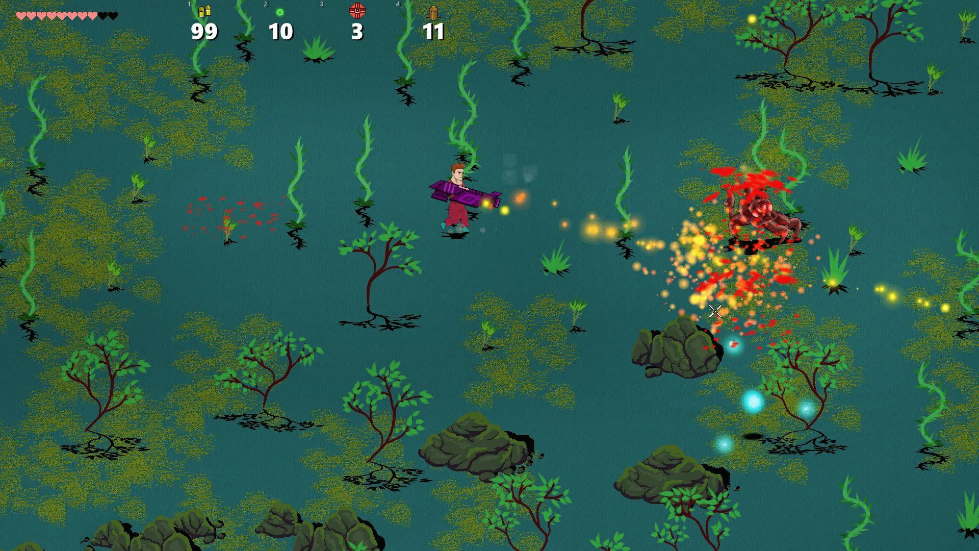 Mutants Must Die! - It's a dynamic shooter, in which you'll have to kill mutants. The character needs pass the main giant mutants each 3 levels. In game you'll meet 7 different types of mutants and 4 types of weapons. Each level is passed through a specific teleport at the end of the map. In gameplay you'll need to collect ammo for your different guns and additional first-aid kits.