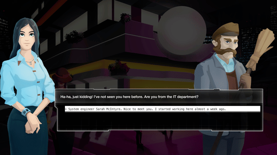Longest Monday: Unveiling is a science fiction detective quest, where you have to uncover the secret of a robotic corporation while trying to break out of the time loop.