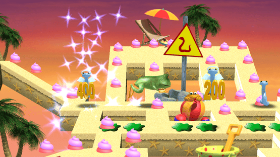 You are a hungry frog on a mission. A mission to eat lunch. Clear each maze in this fun-filled and frog-filled action arcade game. Watch out for the snakes! Snakes are only edible after froggy eats a special power anti-acid tablet. Clear each maze and move on to the next level.