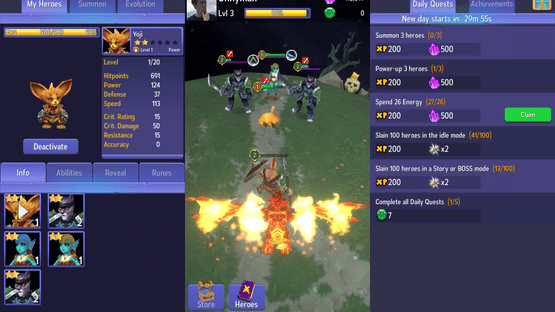 Hero Masters is an idle battler taking place in a fantasy world. Find the way out from an infinite number of farthest planets and darkest dungeons with the help of collected heroes which you evolve throughout the game. Put a perfect combination of heroes and unleash their magic powers by drawing symbols on the screen of the device to defeat rivals, destroy universal evil and reach the shores of a perfect world. Fame, glory and treasures are waiting for those who dare to come.