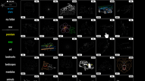 Dot To Dot Puzzles for Adults is an amusing and relaxing game for young and mature people with an amazing world of complex drawings and diverse themes. Discover what is hidden behind, connecting dots orderly. Once puzzle is solved, pictures can be customized, changing lines colors. Images to draw by connecting the dots are classified into tags as Art, Monuments, Landscapes, Mandalas, Animals, Vehicles and Sports among others.