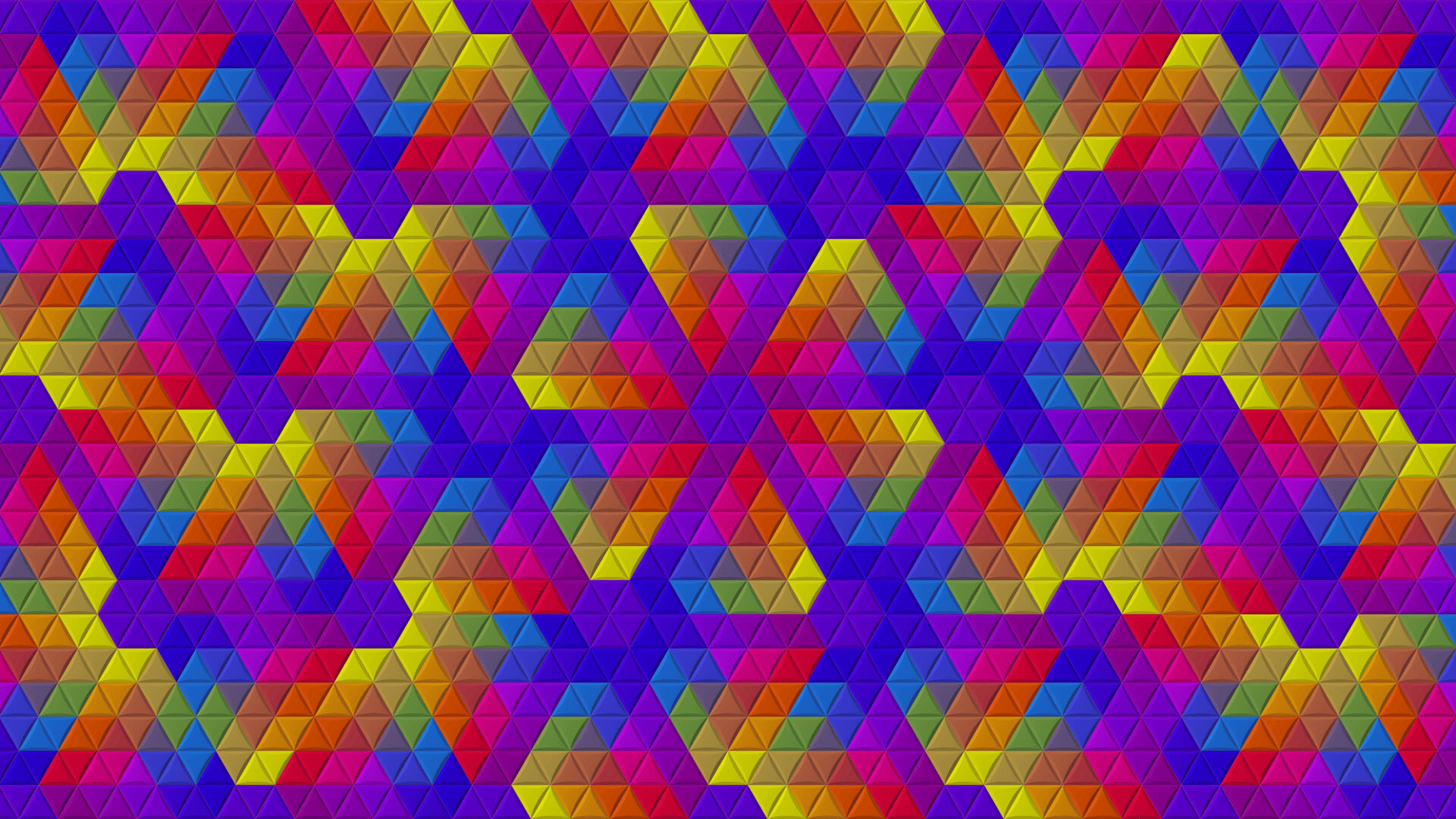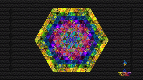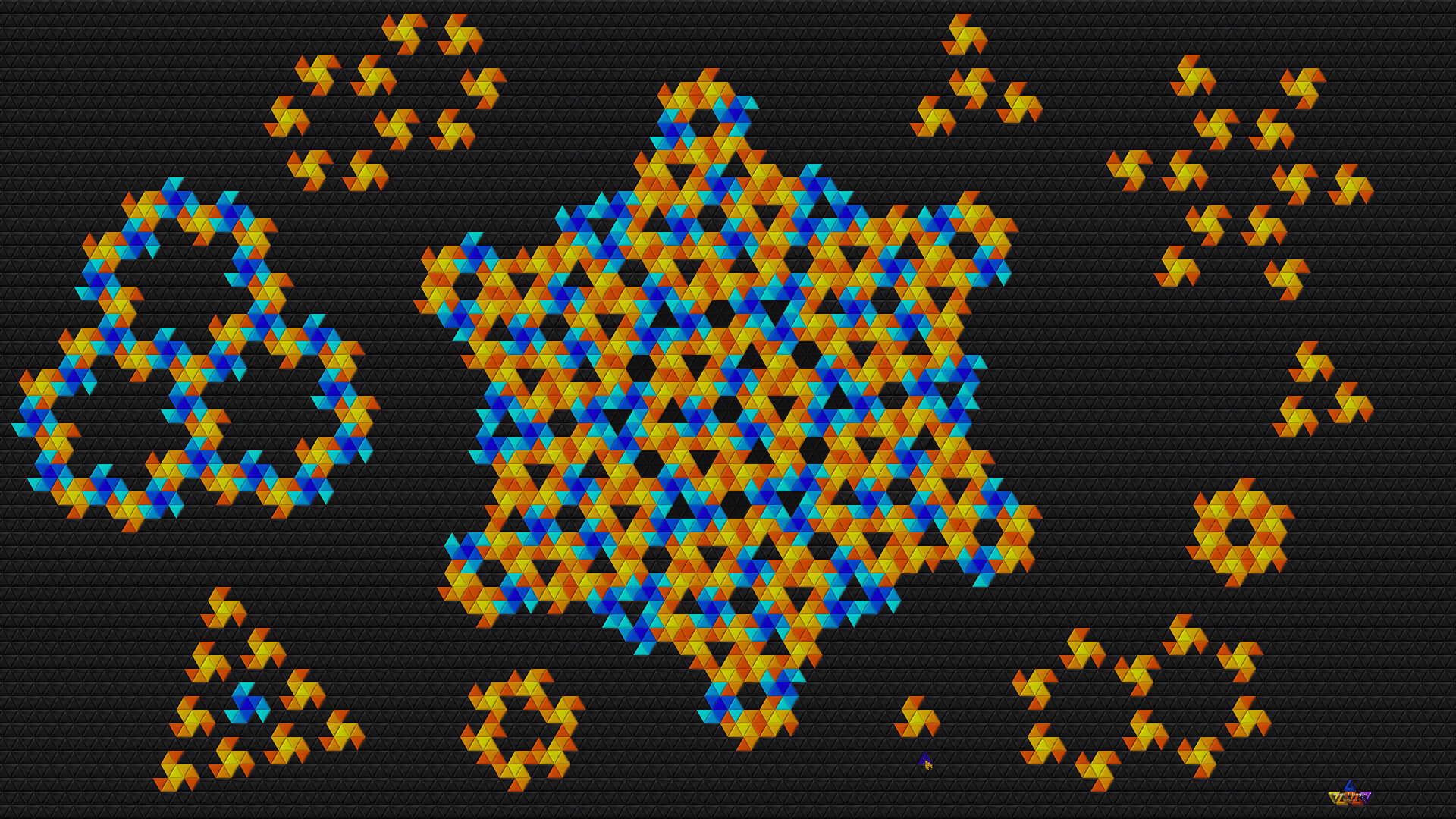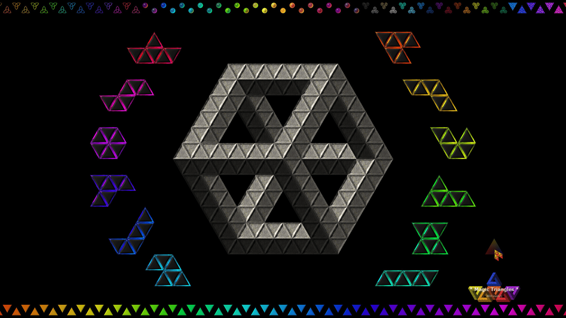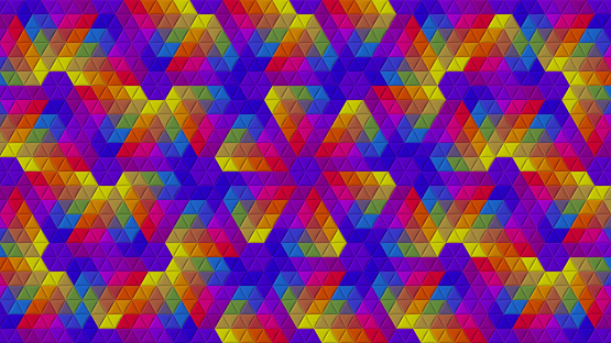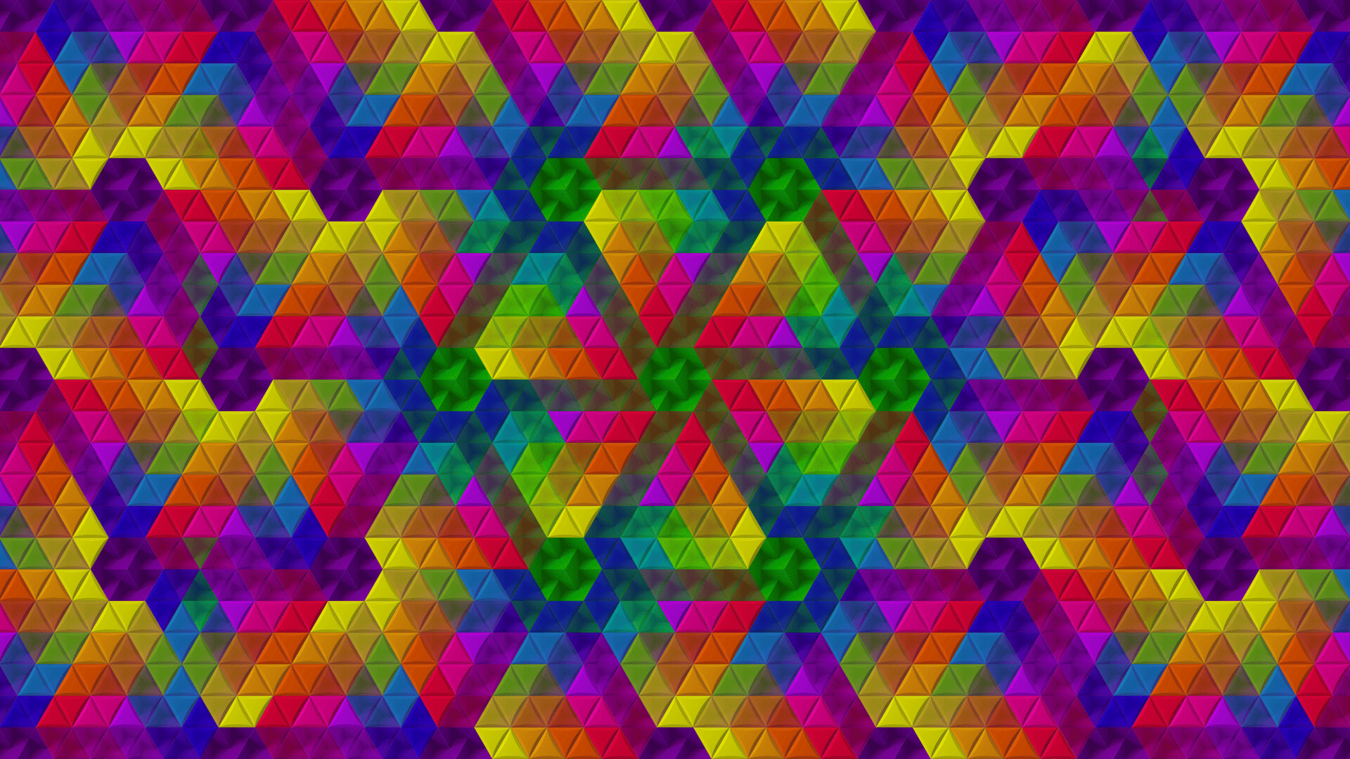 Hexiamond puzzle game and mosaic painting with equilateral triangles.