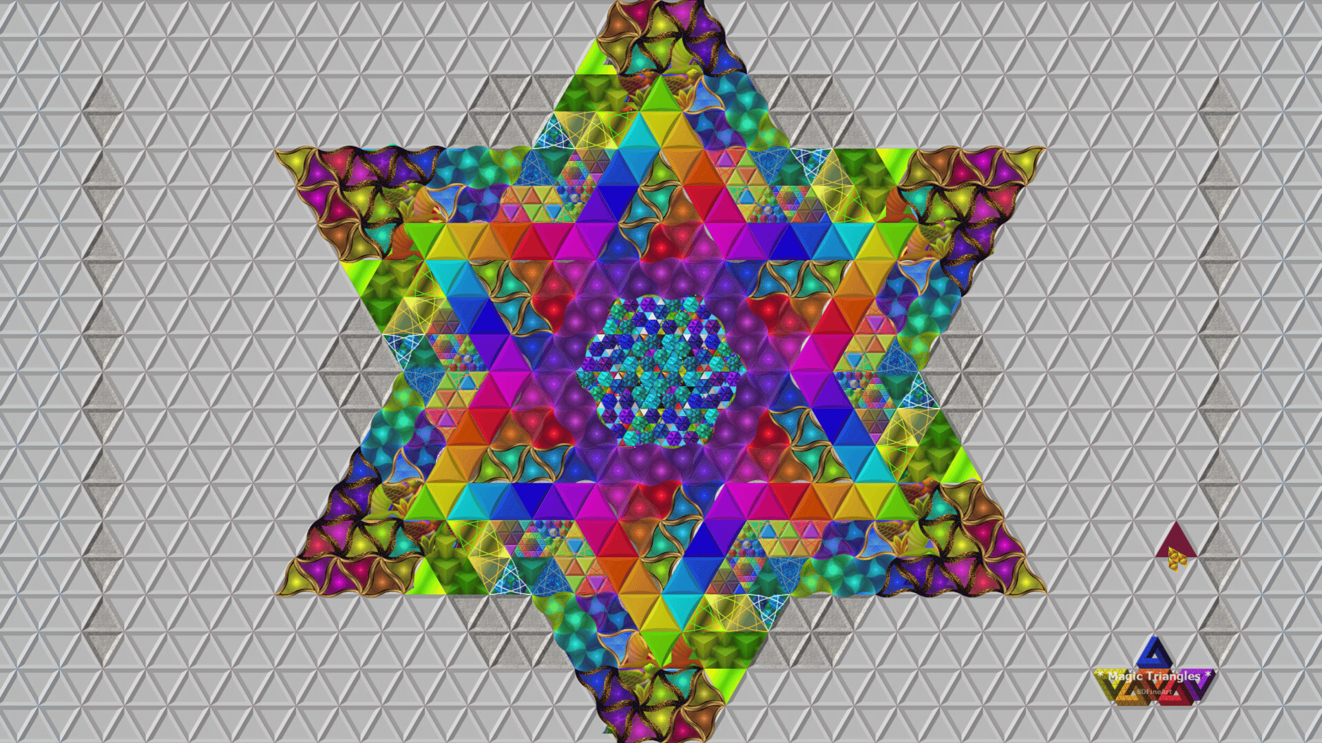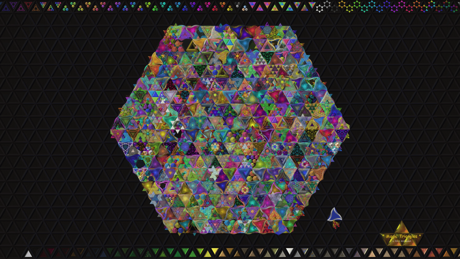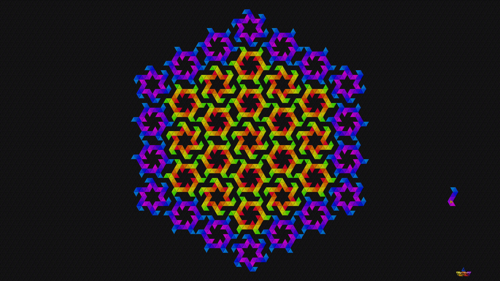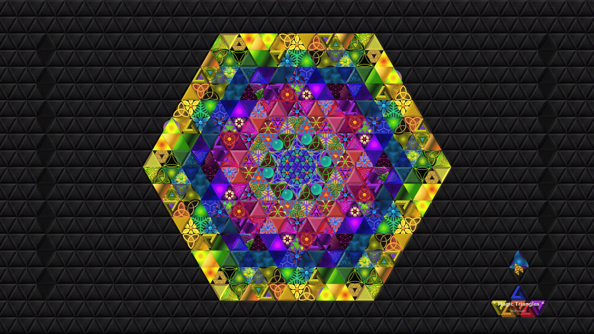 Hexiamond puzzle game and mosaic painting with equilateral triangles.