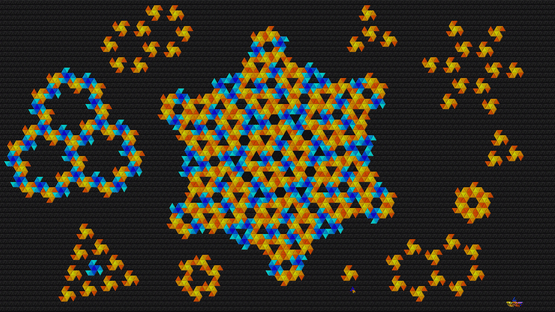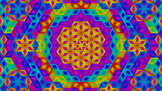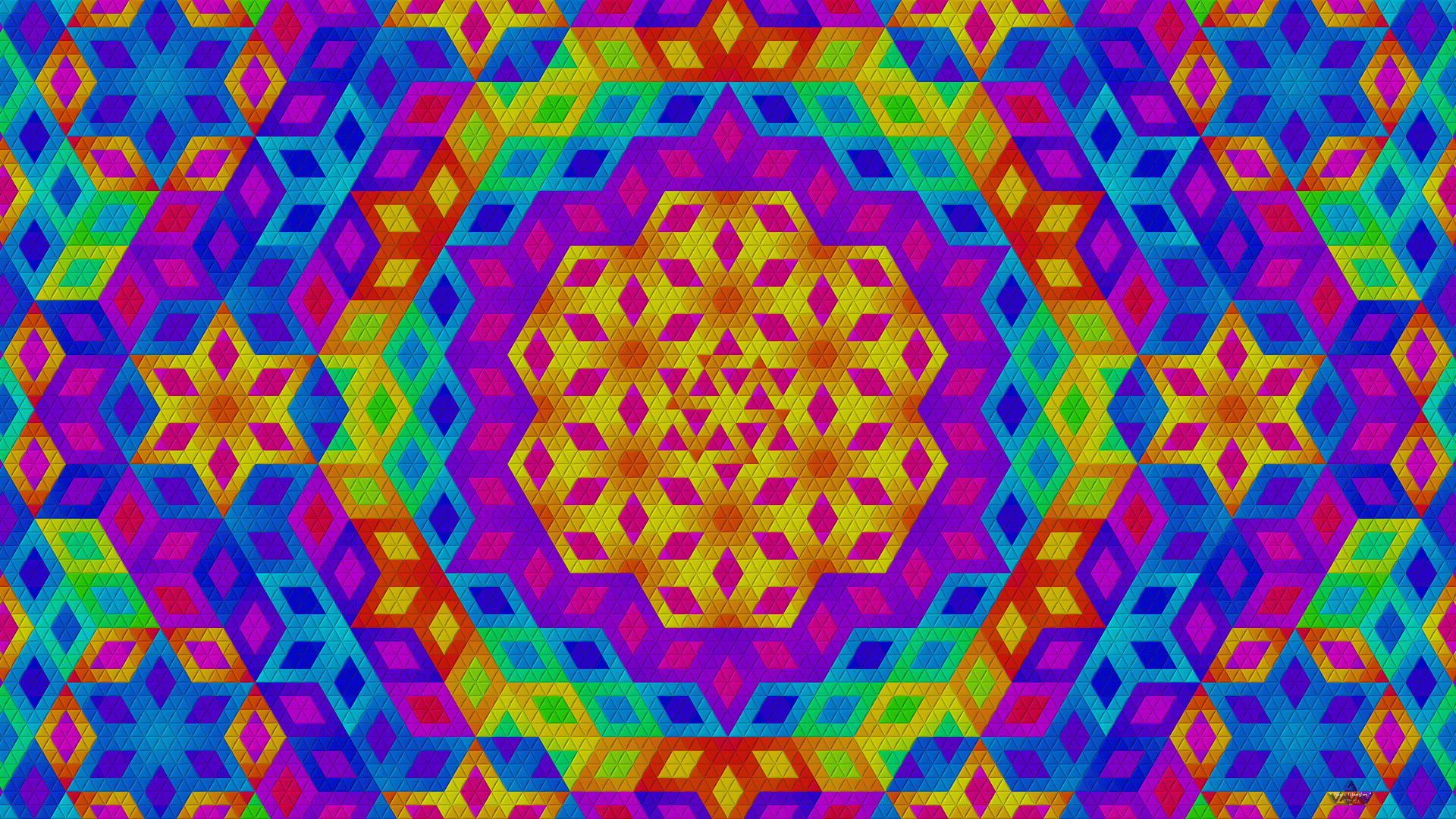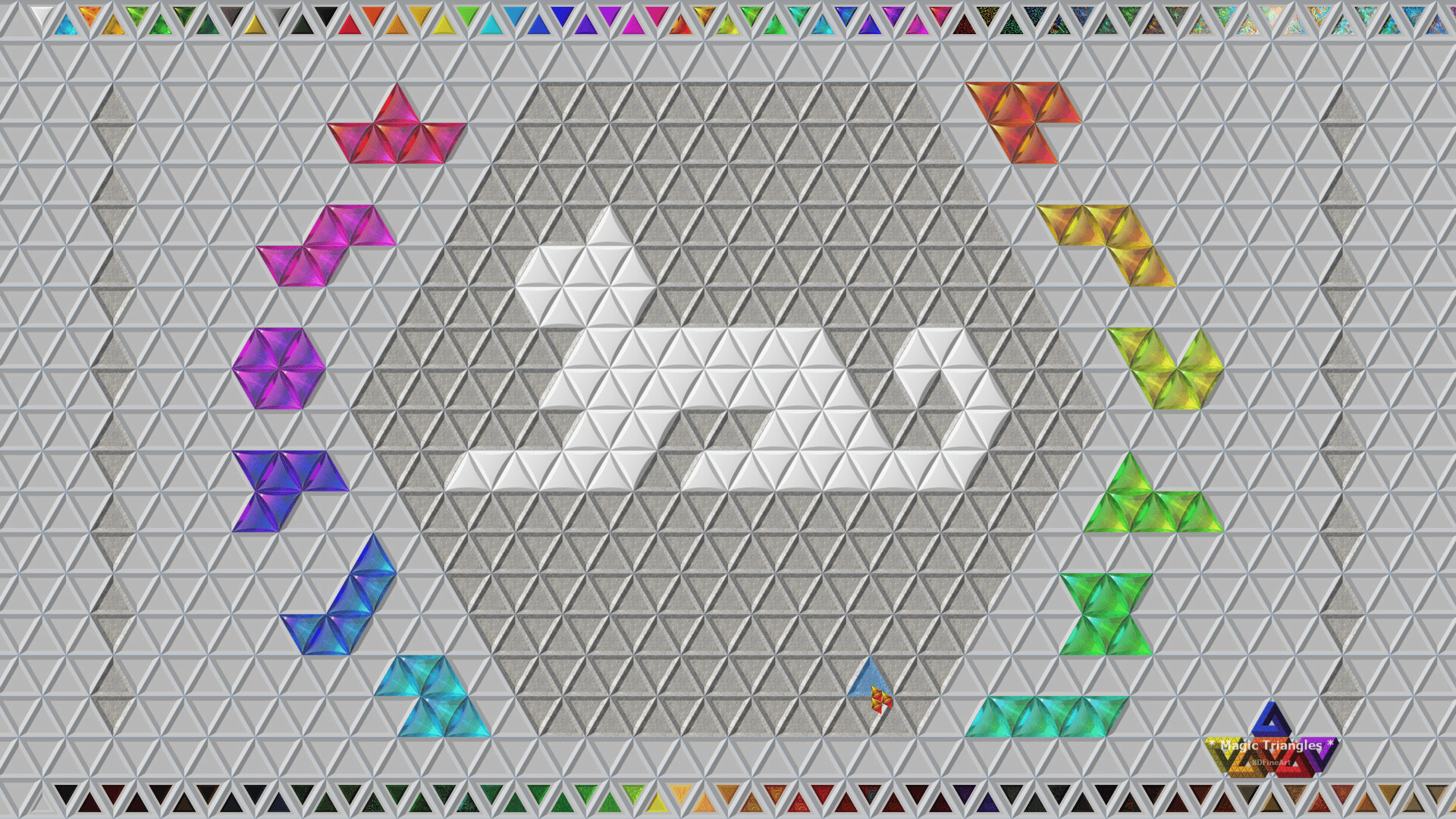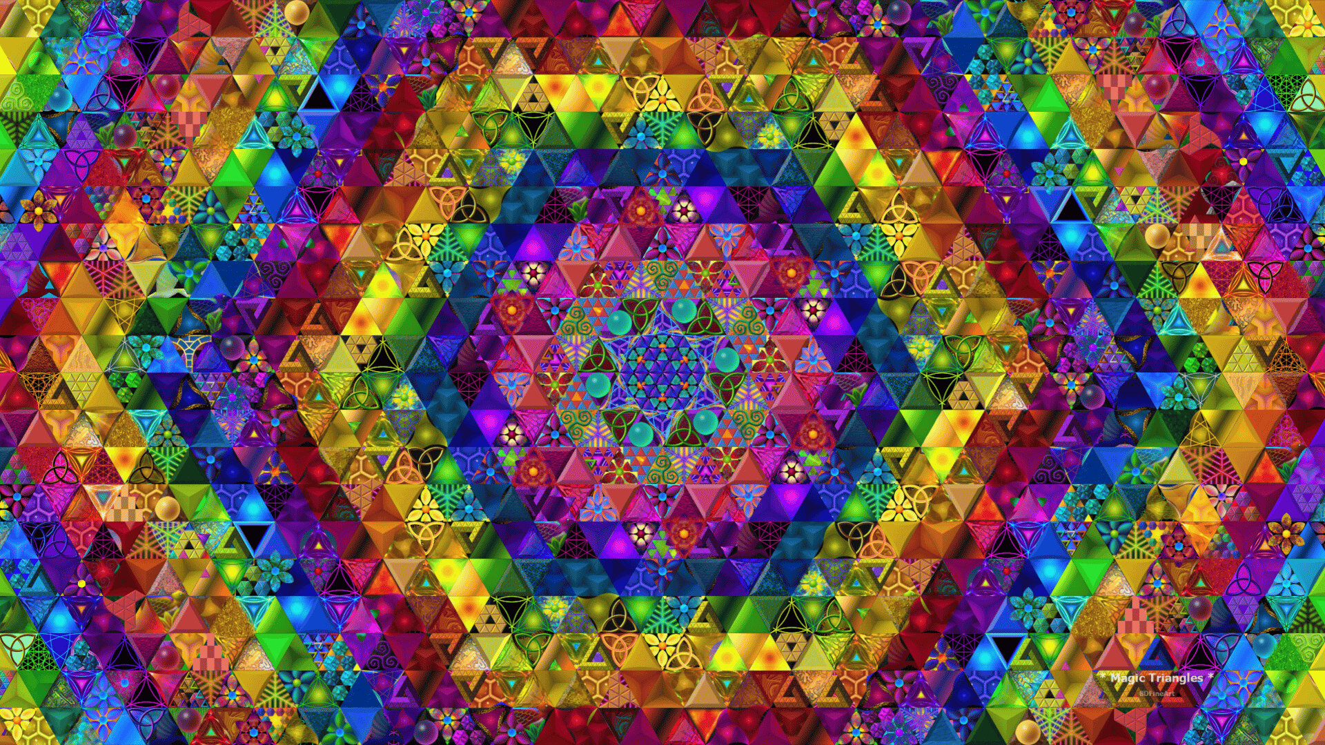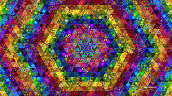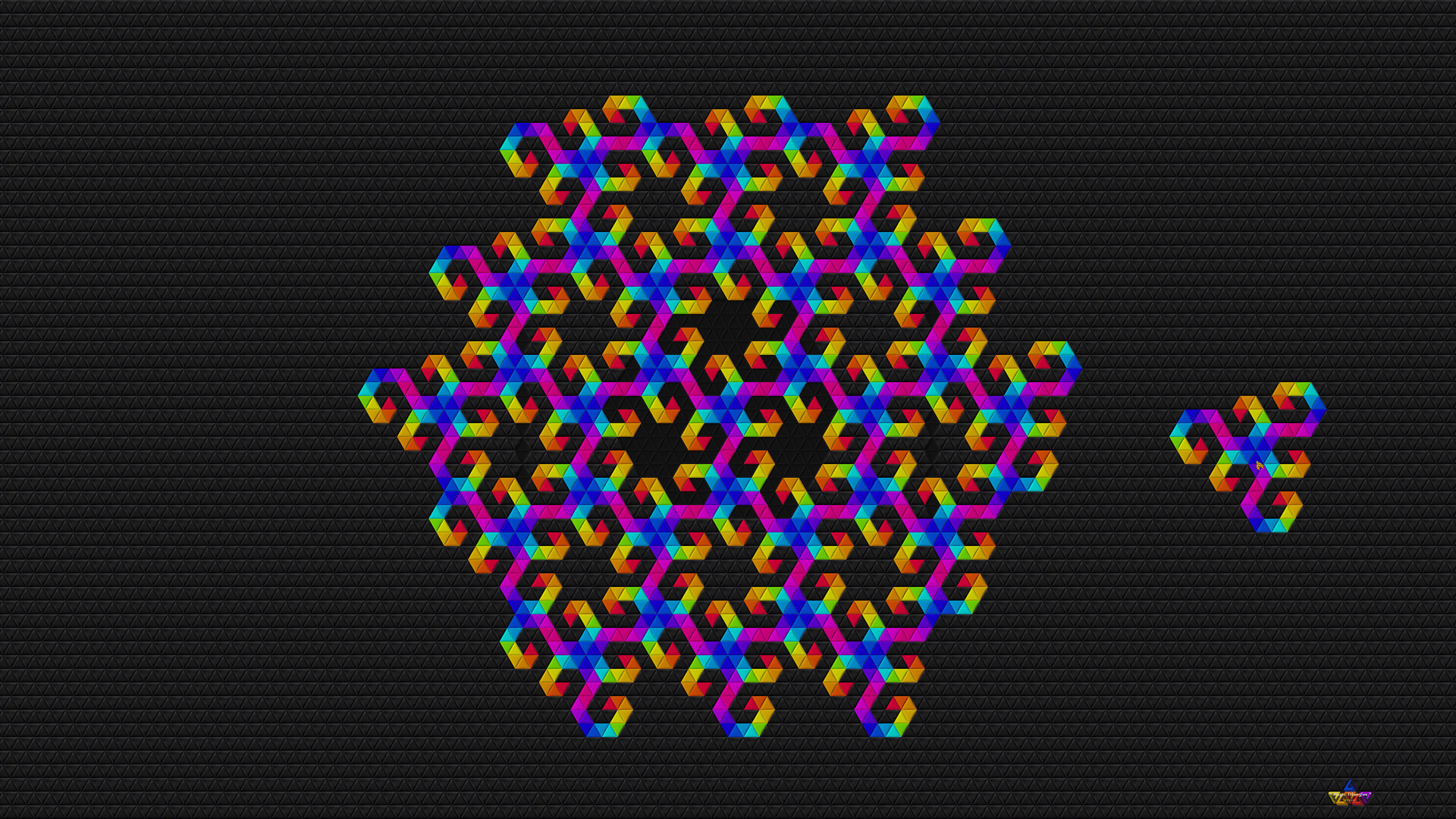 Hexiamond puzzle game and mosaic painting with equilateral triangles.