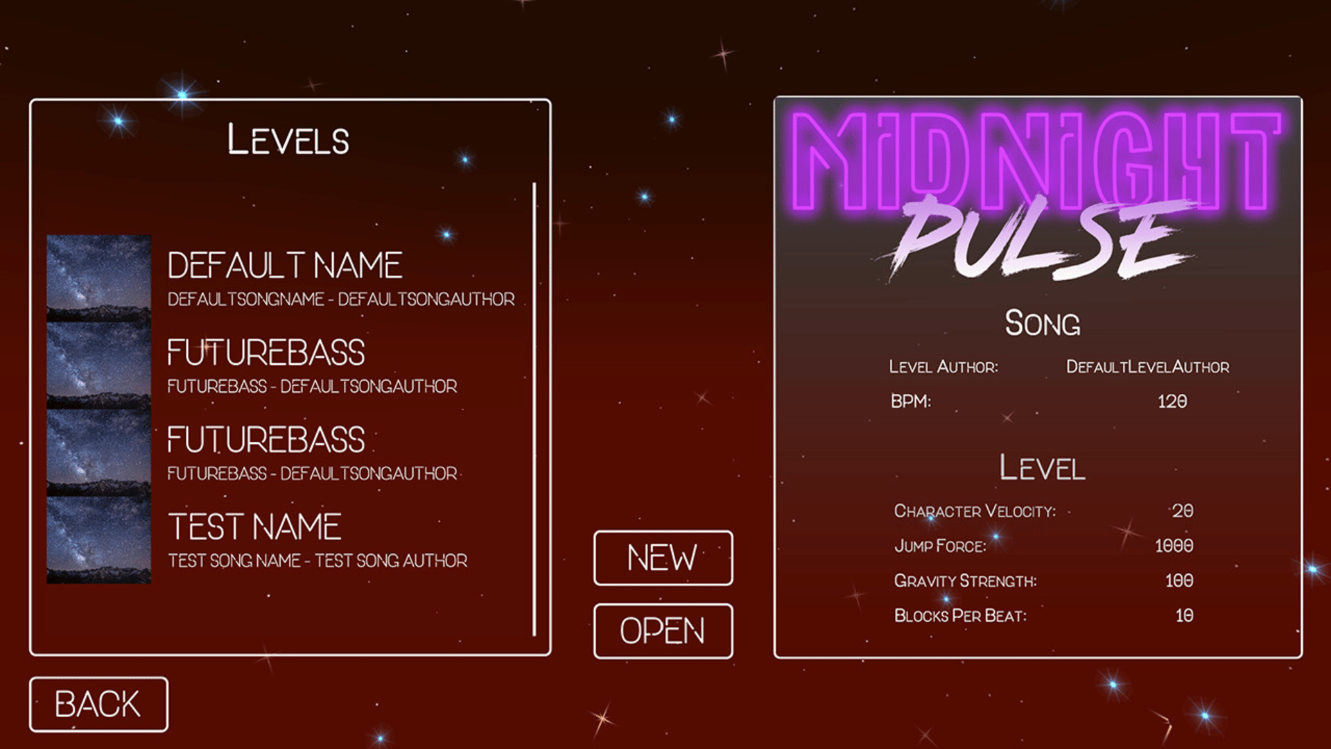 In this stylish rhythm platformer you will traverse an obstacle ridden terrain while listening to a wide variety of music. Listen carefully because you must base your movements off the music to successfully complete each level. Equiped with a fully functional level editor create levels with your own music and share them with your friends!