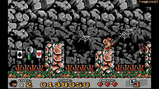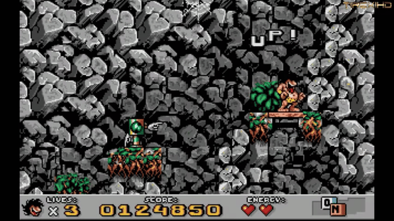 Prehistorik 2 takes up the story of its predecessor, for another caveman-era platform game. The hero must use his club to crush animal enemies, many of which then release bonus items to collect. He no longer needs to feed his clan, so there is no required minimum food target, unlike the original game. Other bonus items are located around the levels, while yet more can be found by using your club creatively and adventurously. There are bosses and passwrods after every few levels.