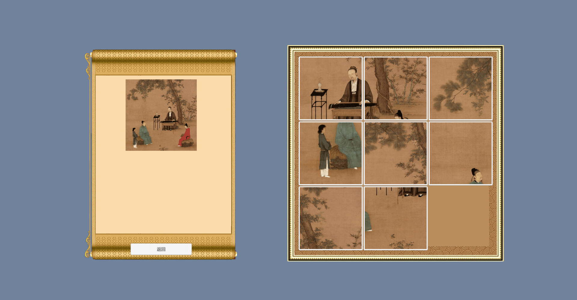 Puzzle:Traditional Chinese Painting, To the Chinese traditional culture salute. Puzzle:Traditional Chinese Painting is a simple, but rich in content puzzle game, the main purpose of the puzzle is the classic Chinese painting works, including Qingming Shanghe Tu and other well-known classical paintings. China is a country with a history of 5000 years, and Chinese painting art has a long history.