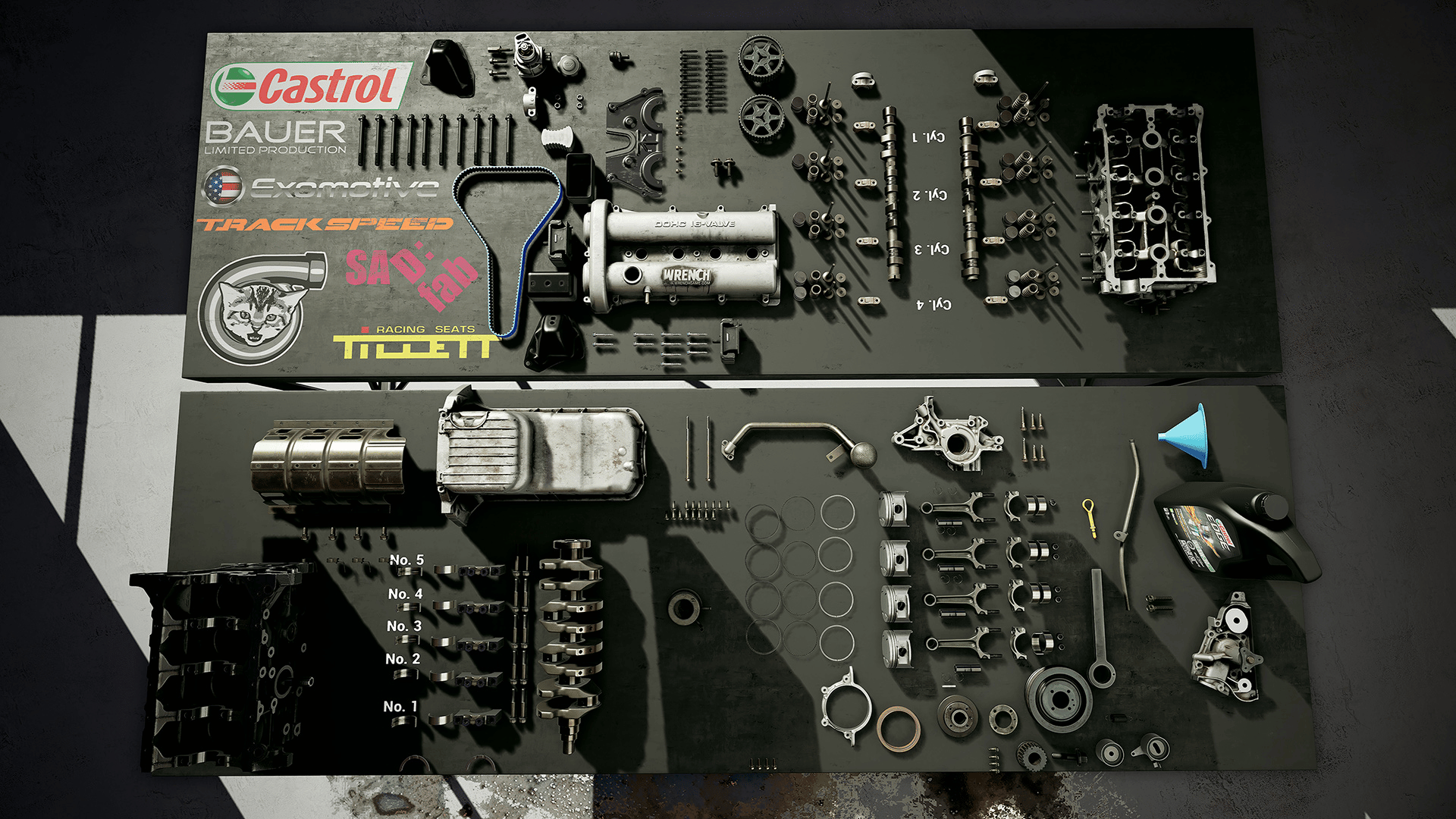 Wrench is a highly detailed race car mechanic simulator that tasks you with running a motorsports prep shop. Wrench is a game about working on race cars. Players run a shop and responsible for their customers car’s- From fluid changes to replacing engine main bearings. Wrench is being developed as both a VR game and a traditional screen based game and allows players to switch between play modes fluidly. The first two cars licensed for Wrench are the Bauer LTD Catfish and the Exomotive Exocet. Wrench also features a growing library of aftermarket parts that the player can use to address customer needs or install on their own persistent shop cars.