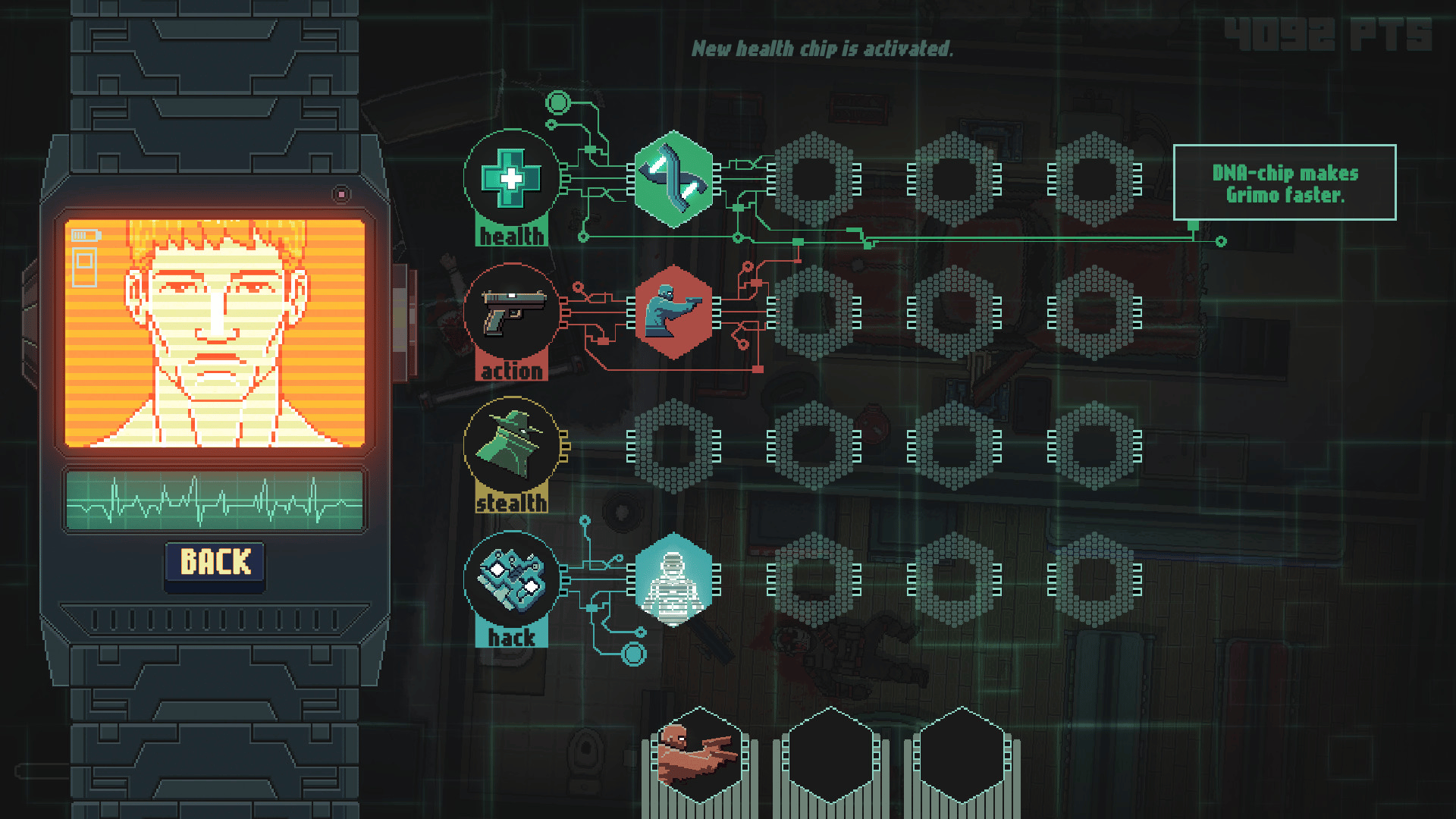 Grimo is story driven stealth action in pixel art. Cyberchurch, neural implants, advanced robots and augmented humans all of these are common things in Grimo's world. It’s on!
