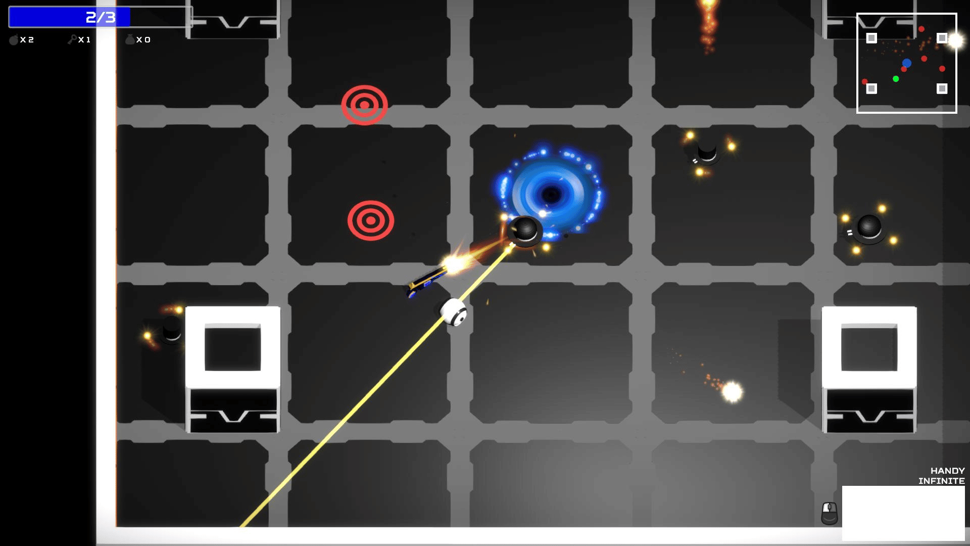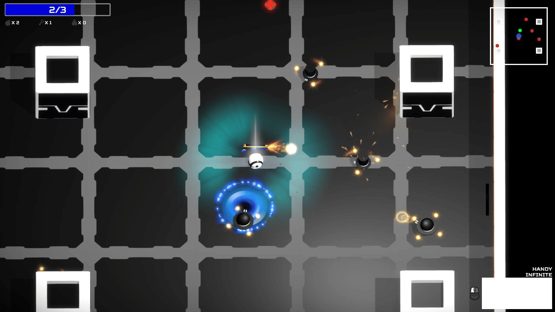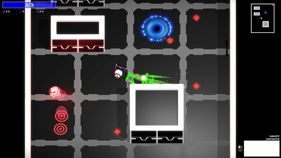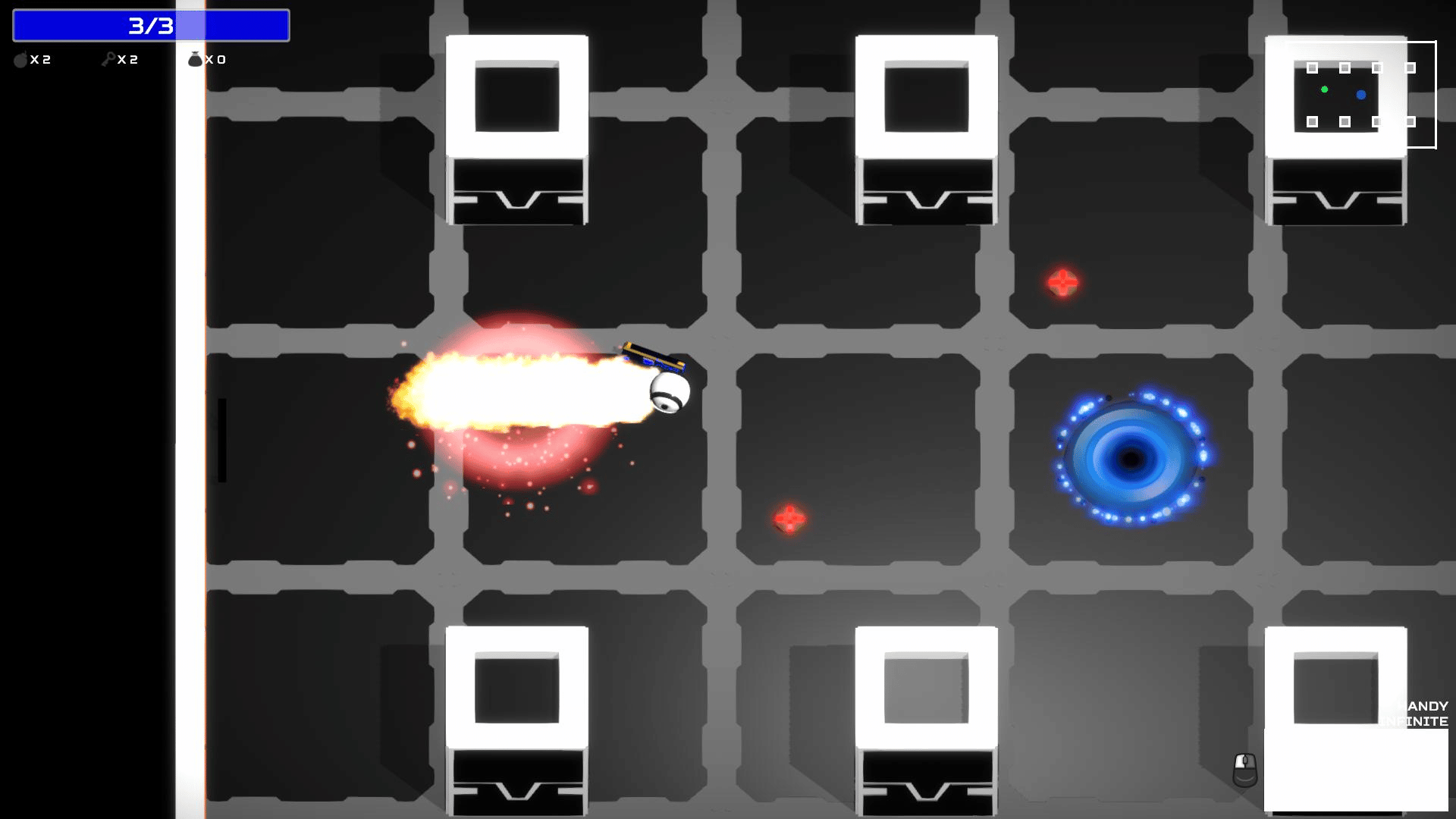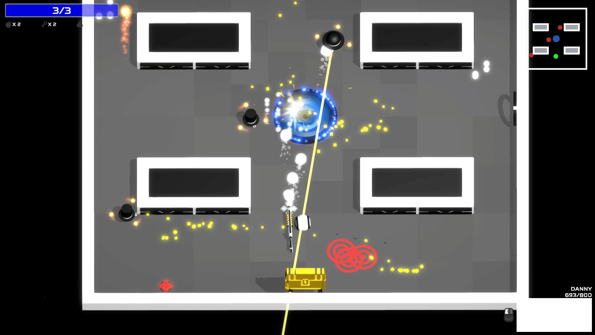 Topdown roguelike dungeon crawler set in a simulation with enemies themed as helmets and hats