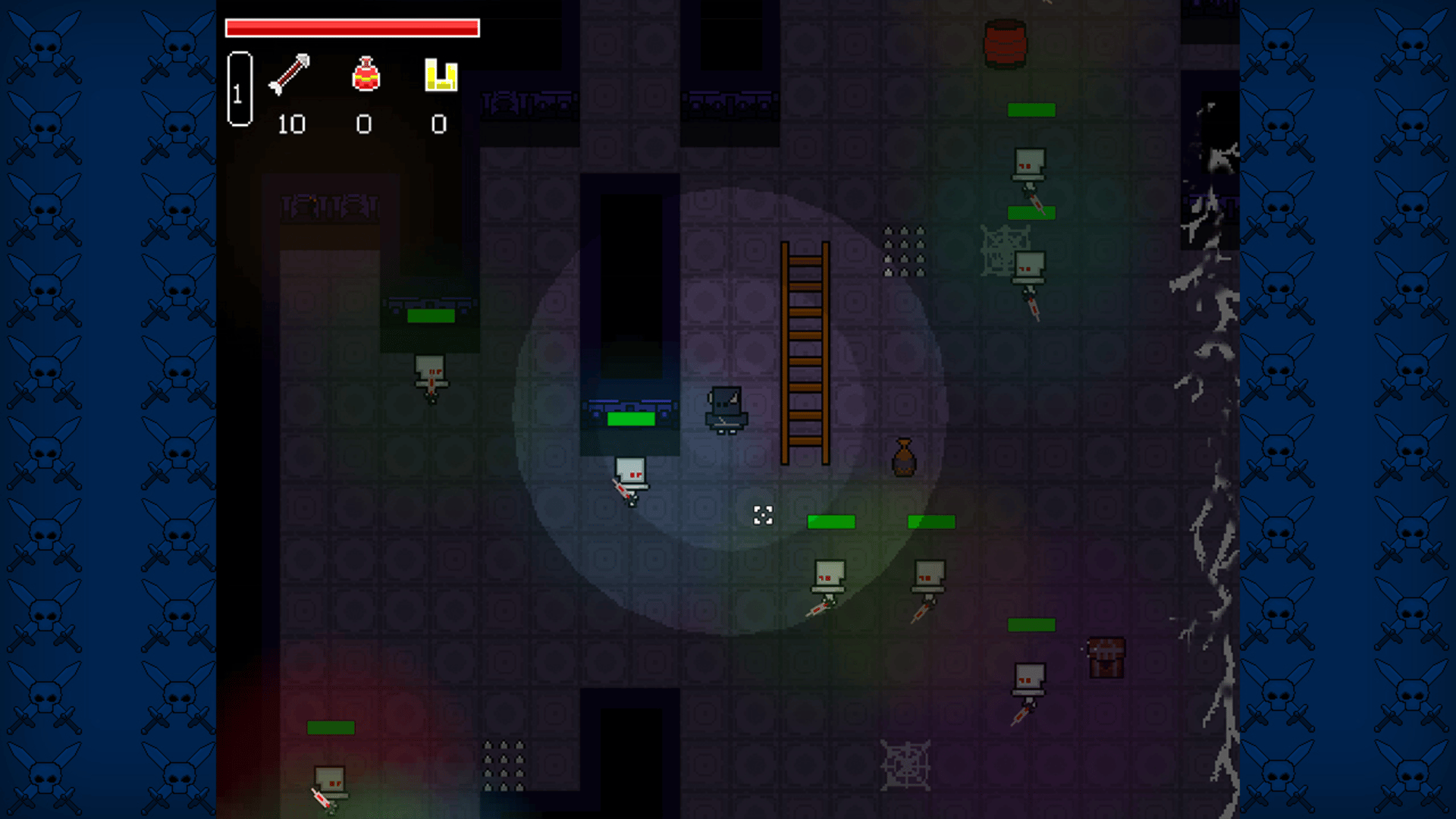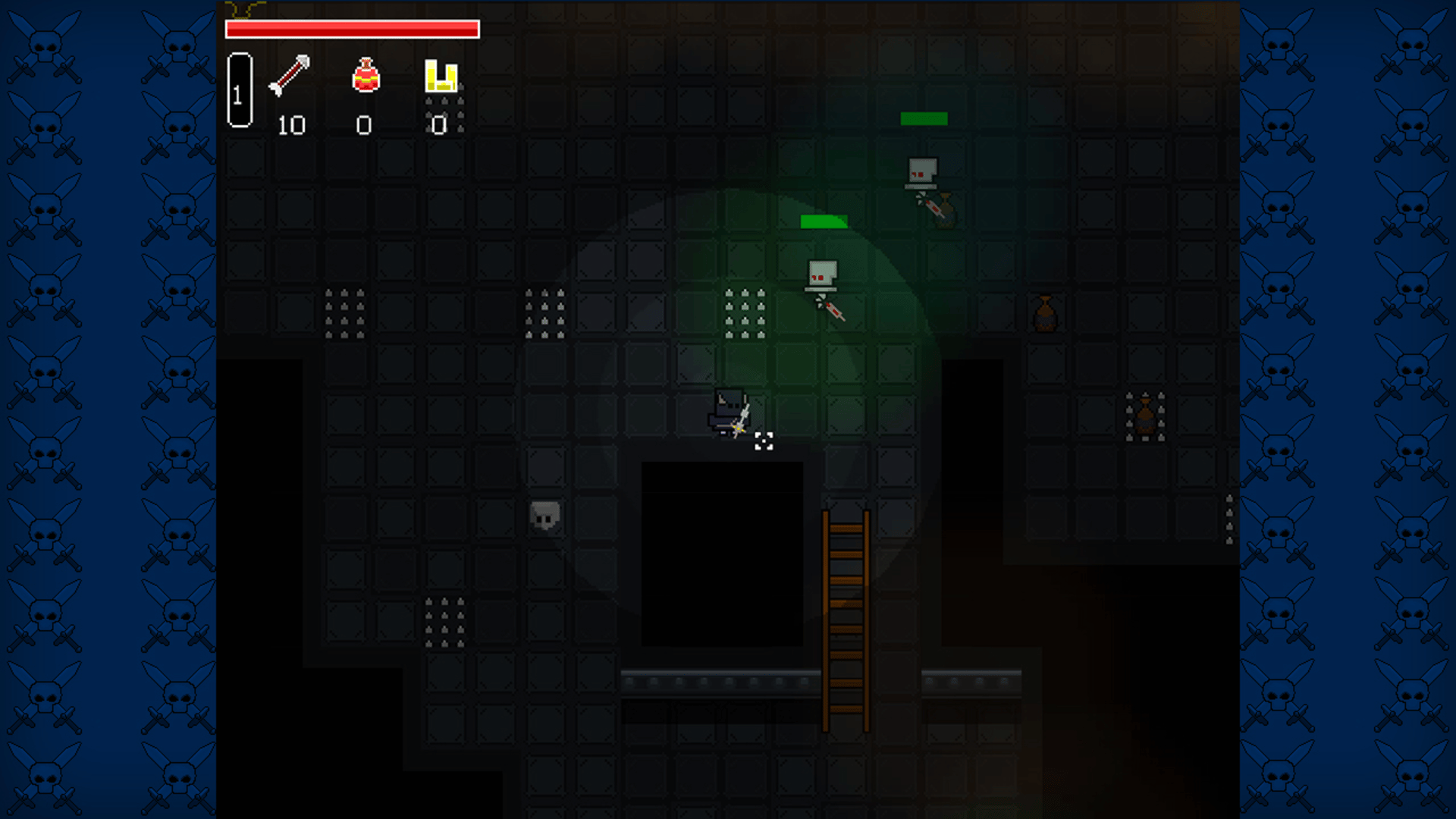 Explore a random dungeon generated, pick up loot, level up, fight enemies and bosses, buy new swords, go deeper and use your abilities. How long will you survive?
