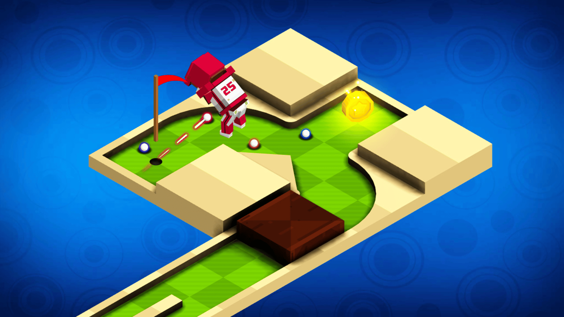 Challenging 3D mini golf simulator with colorful isometric graphics.