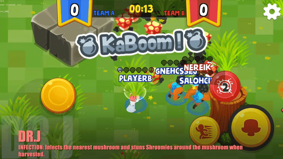 Dive into a mushroom craze world and team up with with your friends in this silly multiplayer mayhem! Harvest, snatch, score OR wreak havoc to win!