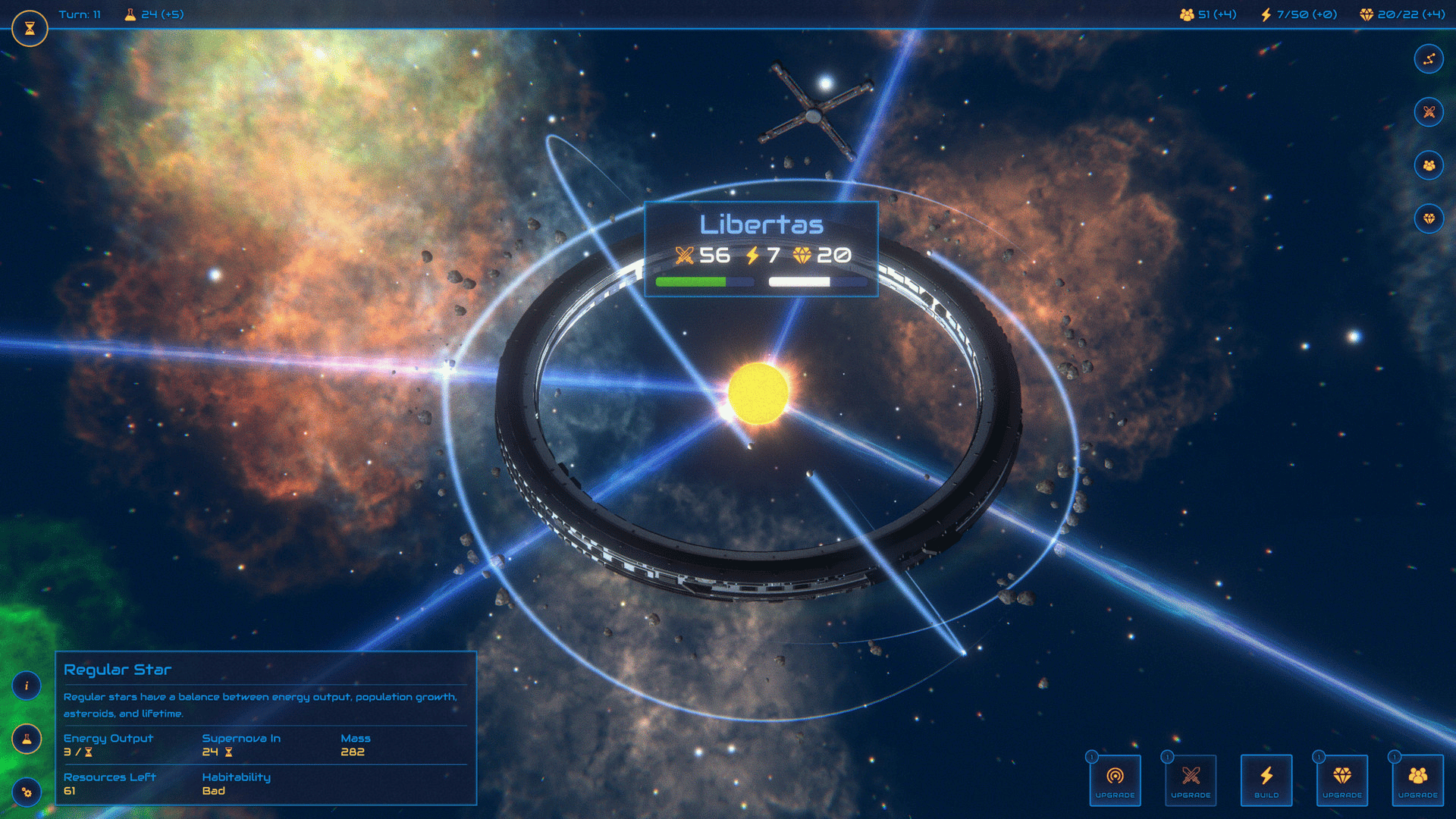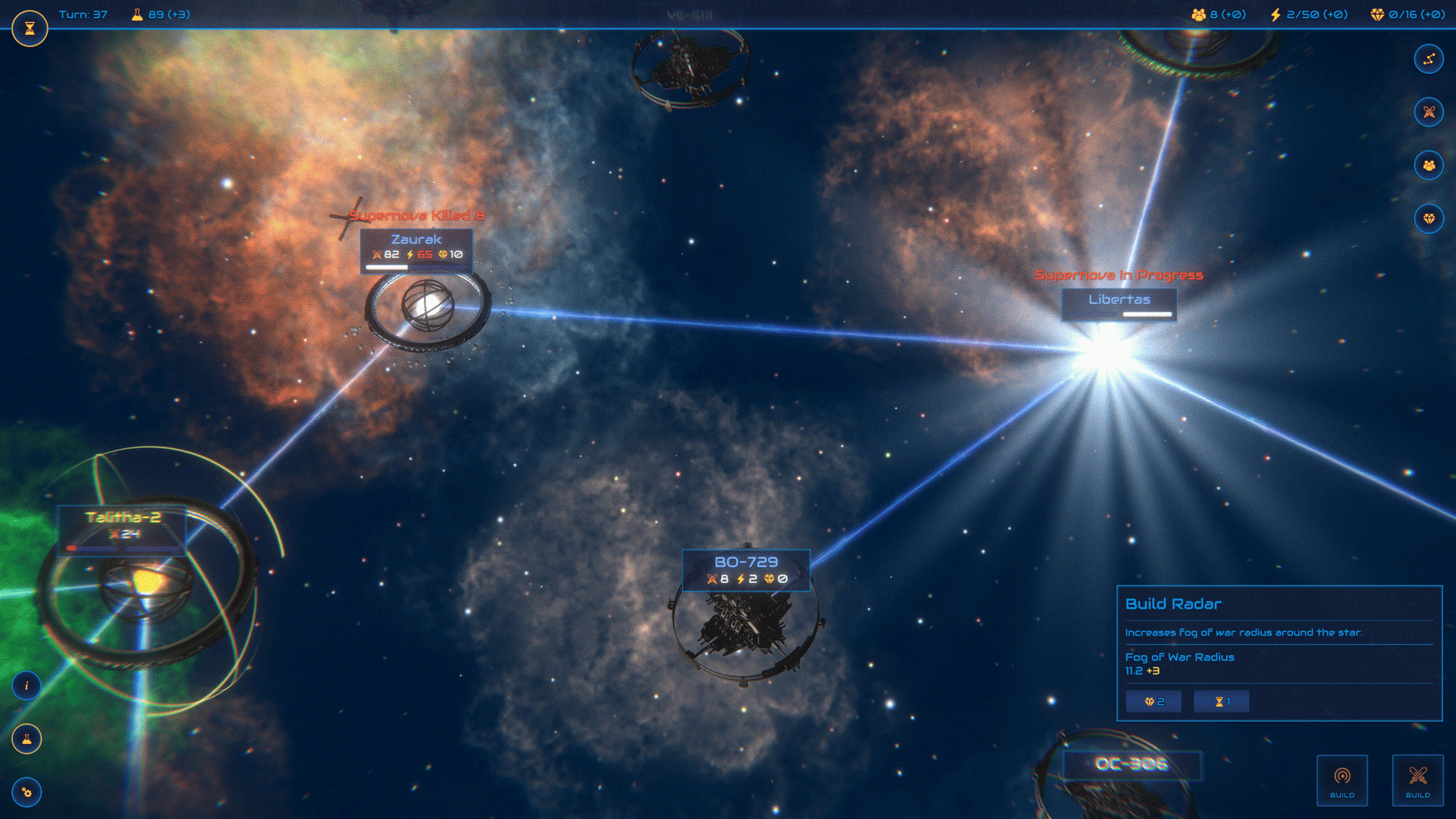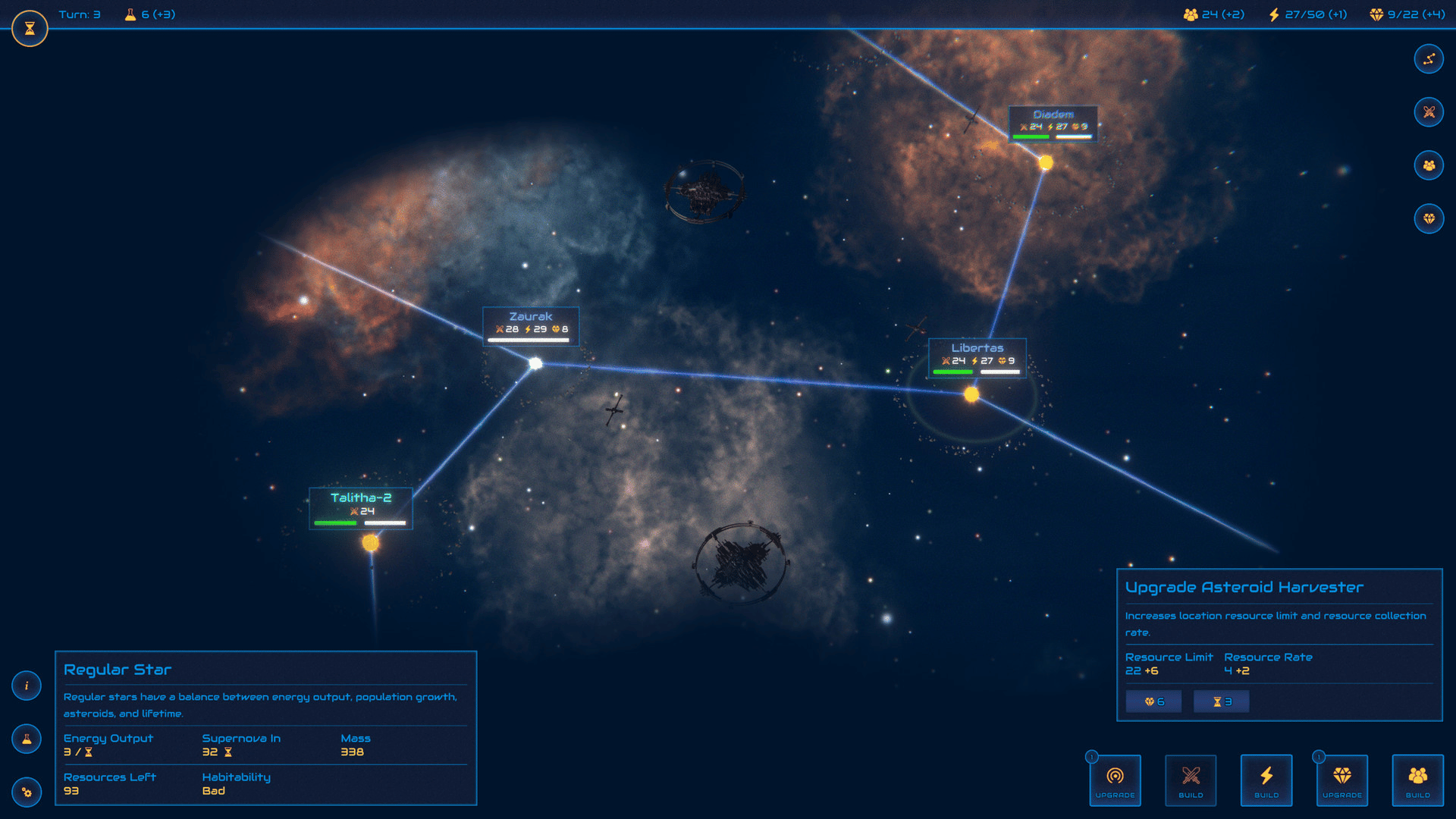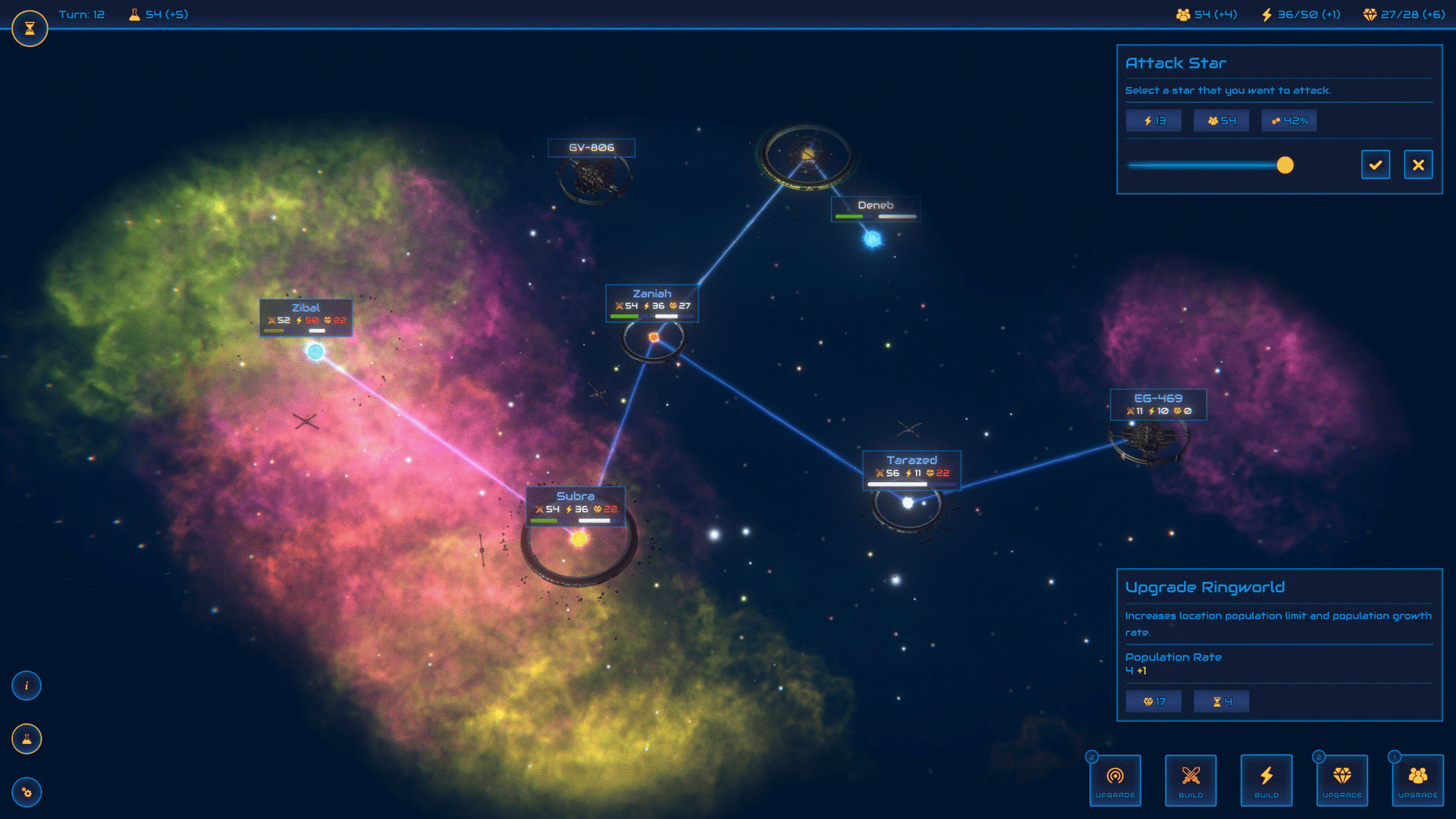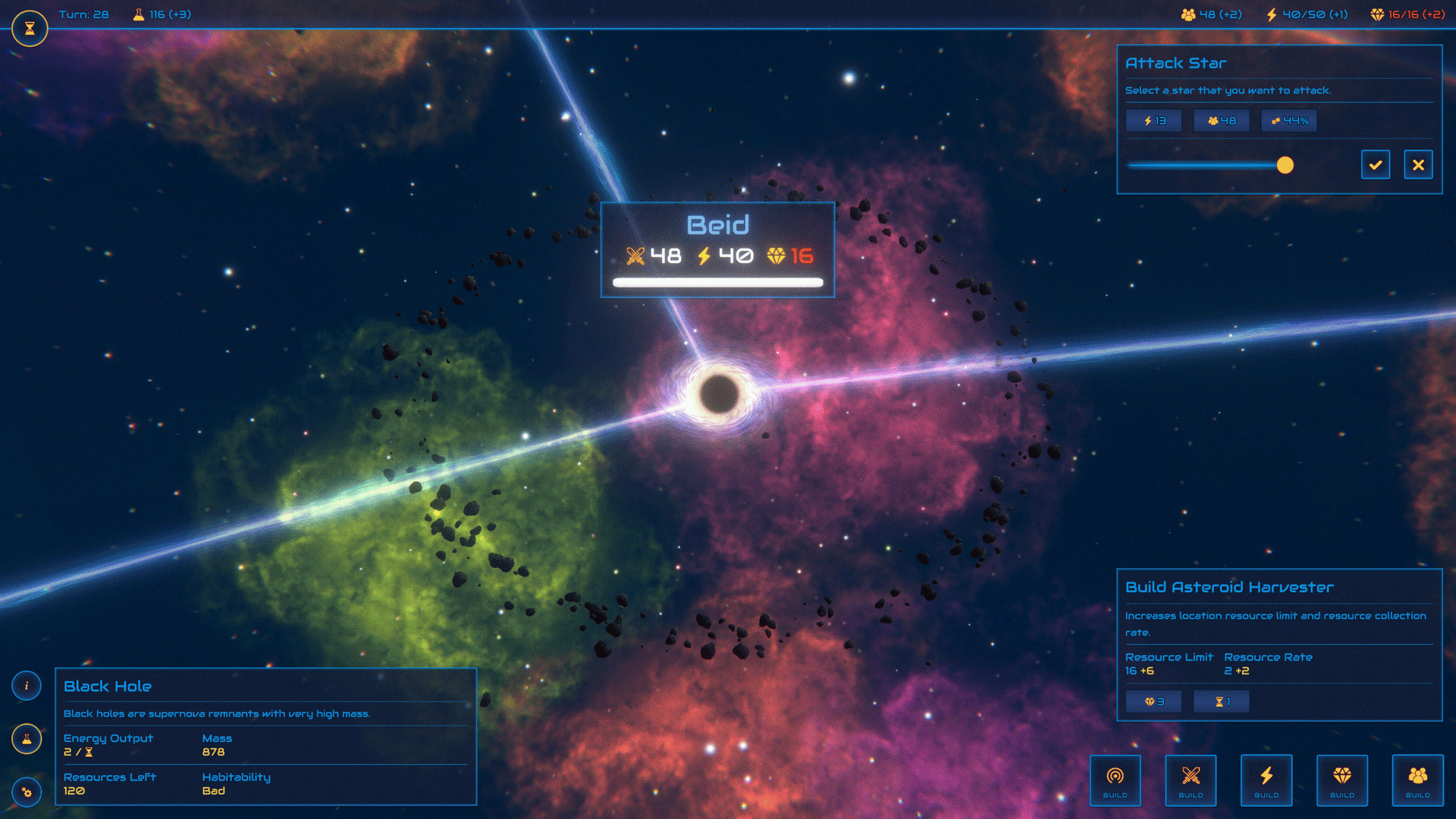 In this turn-based grand strategy game you take charge of a space civilization on an ever-changing battlefield where hyperspace and energy control mean survival. Inspired by Risk, Civilization, and chess.