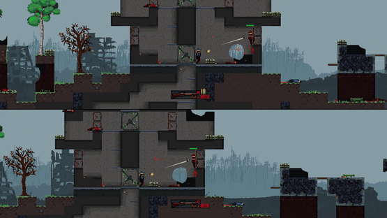 Scatteria is Post-Apocalyptic 2d Shooter best served with friends in local couch splitscreen mode. Find better weapons, destroy your enemy bases, survive and conquer!