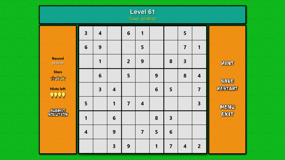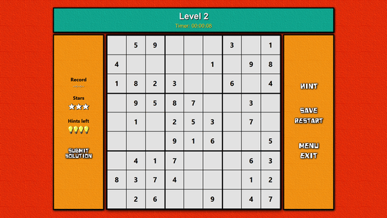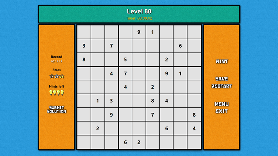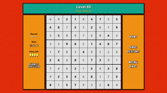 Welcome to "Super Turbo Sudoku", a game not about love, trust, hope or bravery, but about solving Sudokus. No matter if you prefer to just relax solving easy riddles or if you want to prove yourself with insane challenges, this game has it all!