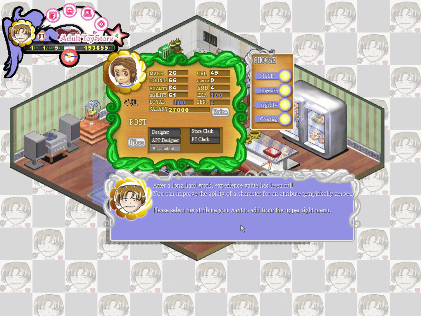 Operating a sex toys shop, Store layout, hiring staff, Develop a variety of fun merchandise, Meet customer needs (But in fact this is not the focus of the game ...