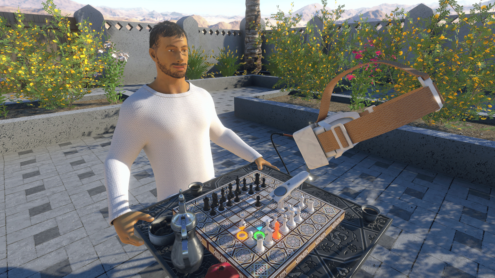Play either backgammon, chess or checkers against a virtual opponent, in a courtyard setting. Play on desktop or in VR.