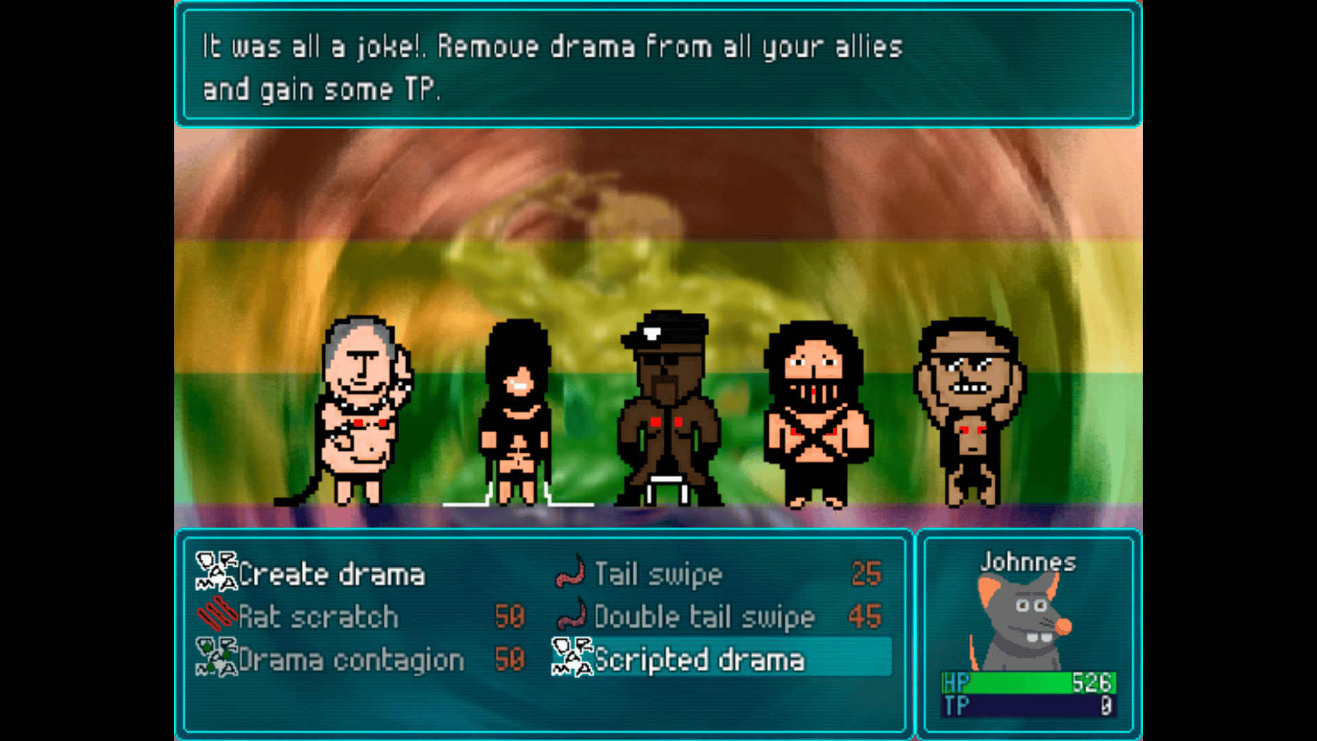 PriceRPG is a sidescroller RPG with a strong emphasis on politically incorrect humor and the concept of evolution of consciousness and emotions.