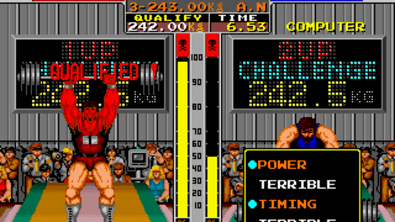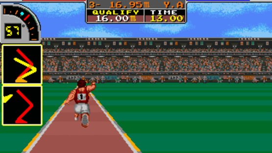 Recordbreaker is a multi-event sports game for one or two players, where the player tries to achieve a world-record score in each of ten competitions. The events include: 100m sprint, 4x100m relay, Triple jump, Pole vault, Long horse, 100m swimming, Weightlifting, Horizontal bar, 100m hurdles and Shot put. The events can be played in any order, although losing an event results in the end of the game.