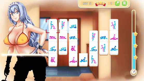 Each time you finish a level you will unlock a new image. For each girl you have 5 images (5 levels) : - Girl fully dressed - Girl half dressed - Girl wearing a bikini / underwear - Girl topless - Girl fully...