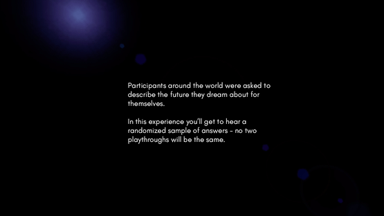 And You’re There, Too is an ongoing collaborative experience that asks people around the world to quickly describe the future they dream about for themselves. No two playthroughs will be the same.