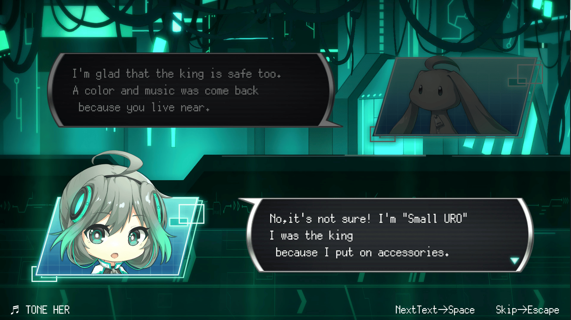 There was a world where Uro alone lives. However, the color and sound disappeared from the world from one day. When wearing a glowing ornament, Uro is wrapped in color and music I notice that music and colors are gone from the world. To regain music and color to the world again, I started running running my music.