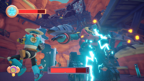 Long Arm of the Law is an action-platformer set in the Robotic West, where one sheriff with an electric revolver and an extendable arm seeks to take back what's his.