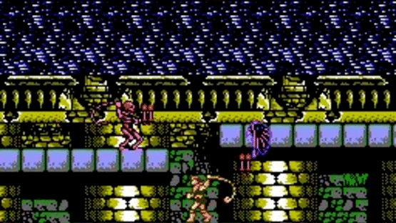 Led by the immortal Count Dracula, the greatest army of evil ever assembled is poised to bury mankind in a Tomb of Terror. Destroying this legion of Swamp Dragons, Slasher Skeletons and Forces of the Undead will be the supreme challenge for the mightiest of warriors. Your place in history is 100 years before Simon Belmont's birth. Dracula is young at heart, and it will take more than a stake to penetrate his evil. Luckily, you command the role of Trevor - Simon's forefather and the origin of the Belmont Warlord Chromosomes. Trevor has a power never before seen by human eyes - the power to transform into three different spirits: Grant DaNasty, the ferocious Ghost Pirate. Sypha, the Mystic Warlord. And Alucard, Dracula's forgotten son. You must perfectly time Trevor's body transformations to match up his different fighting spirits against Ultimate Evils. Trevor also has the strength and wisdom to command the Battle Axe, Invisibility Potion and Mystic Whip. But the most important weapon Trevor has is your cunning to choose the correct Paths of Fate and your bravery to lead him past 17 possible levels of never-ending doom, including the Haunted Ship of Fools, the Sunken City of Poltergeists, the Clock Tower of Untimely Death and Curse Castle. Never before have so many dangers confronted you at one time. And if by some miracle you triumph, you'll no longer be a mere mortal. You'll be a legend who'll live forever!