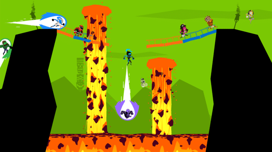 Runbow is an action party game with a unique art style and a never-before seen colour mechanic that will keep you running back for more. Platforms and obstacles appear and disappear as the background colour changes, so if you can’t see something, it doesn’t exist. Whether you're playing alone or with friends, Runbow is fast, frantic, and a lot of fun. Players can race against each other in The Runbow Run, or go head to head in a number of different modes including King of the Hill and Arena to name a few. Use the Wii U GamePad to become the malevolent ColourMaster controlling the colours and the obstacles in the level, or tackle our toughest game mode, The Bowhemoth, a 30+ minute platforming challenge that will put the patience and skill of even the toughest players to the test. If dozens of game modes, hundreds of unlockable costumes, and a crazy, colourful gaming challenge sounds like fun, then you better get ready to Runbow!