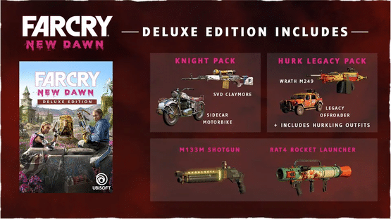 - The Deluxe Edition includes additional weapons, outfits, and vehicle skins to help you survive a new dangerous frontier. - Fight to survive in a post-apocalyptic world as you take up arms to fight alongside a friend in online co-op. - Lead the fight against the highwaymen and their ruthless leaders, the Twins. - Build up your home base and recruit specialists to upgrade it as you unlock all-new features. - Battle your enemies for resources in Hope County and around the country as you venture to new locations.