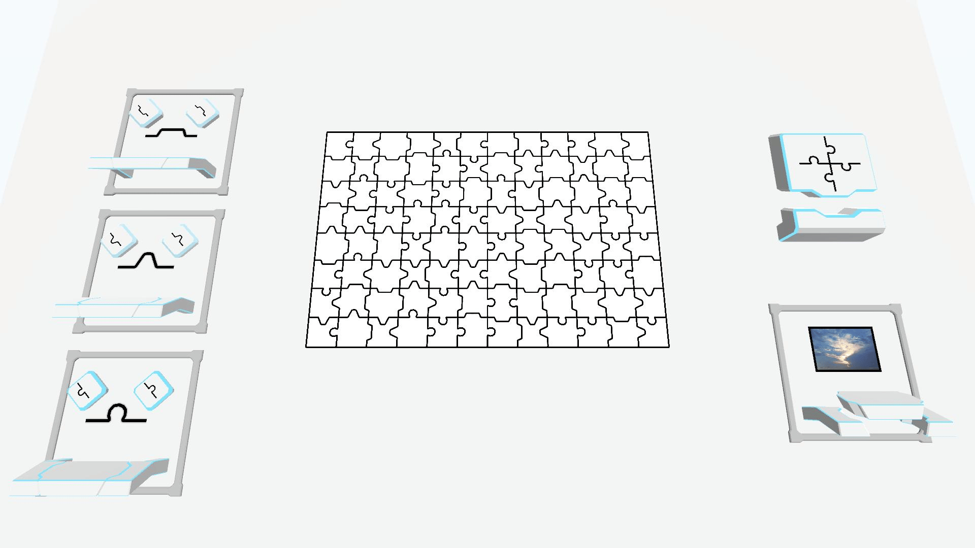 In《Make A Jigsaw Puzzle》you can customize the length and width of the puzzle, the picture and the puzzle edge. Then you can play it on a platform that could move freely .