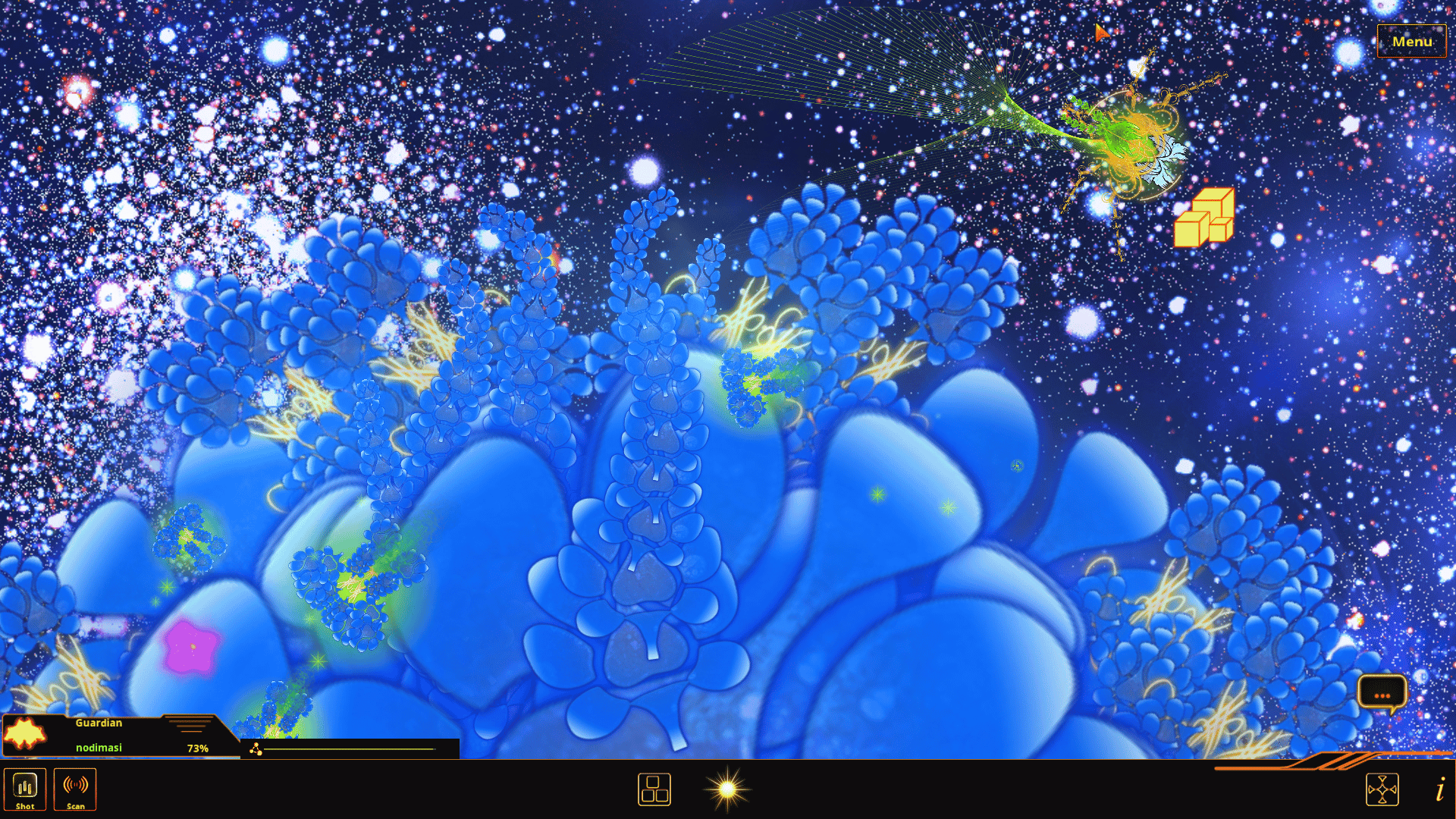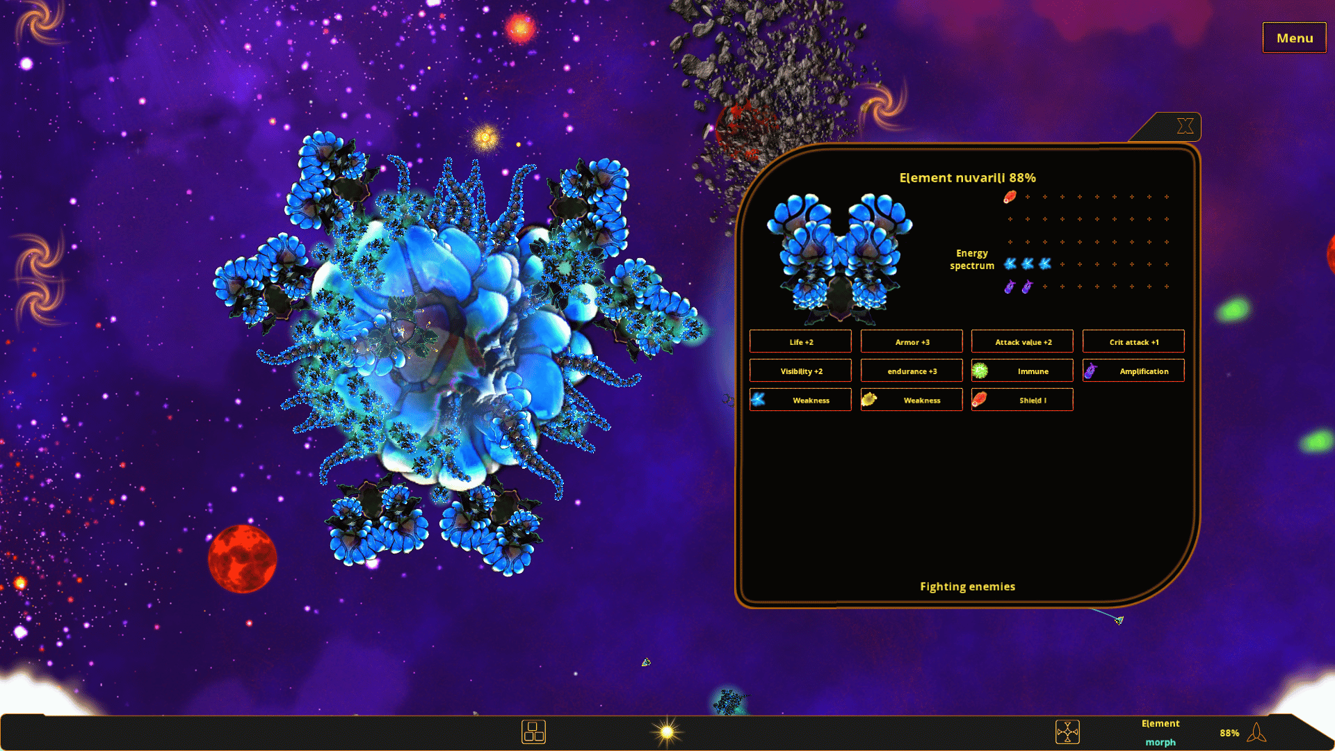 Aether Way is a 2D space RTS with action/roguelike elements. You play as some abstract life form that travels across the space and evolves.