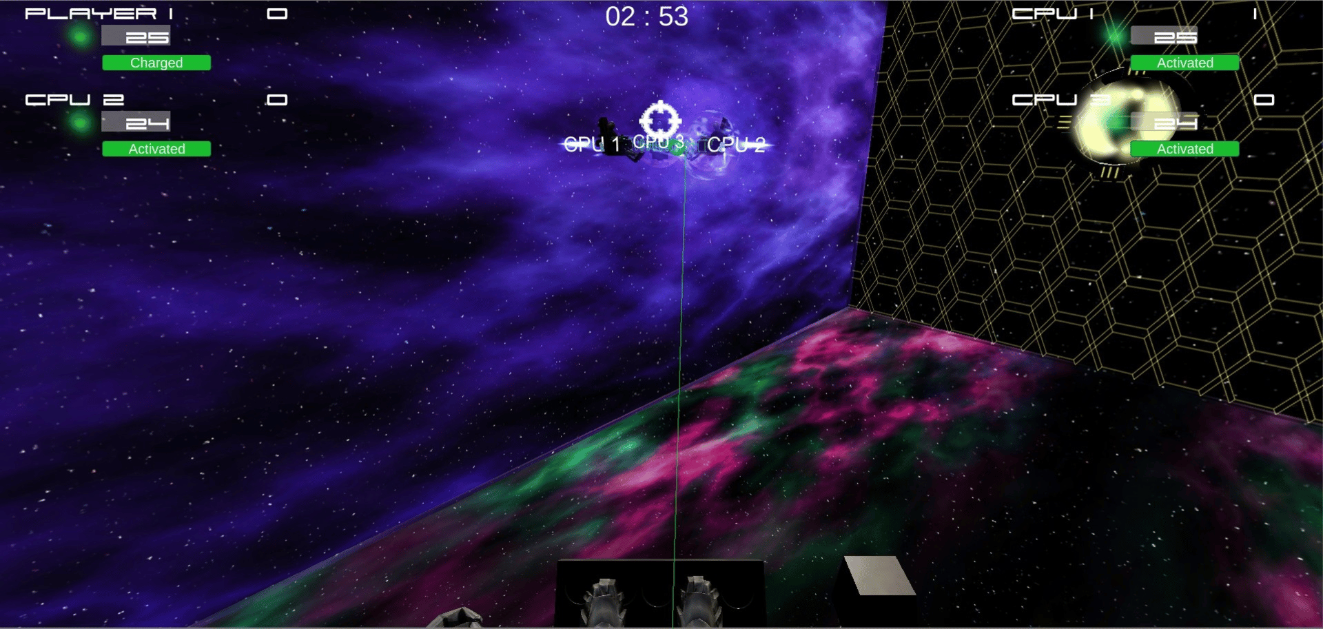 In this futuristic sports game you can use your jetpack to fly around and try to score points by scoring goals