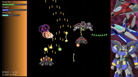 Mobile Wars X is a shoot them up in which you must fight against an alien invasion. You can choose between 3 Mobile X: A very fast ship capable of firing tracking missiles, A robot with advanced ninja weapons and a special ship with unique laser attacks!