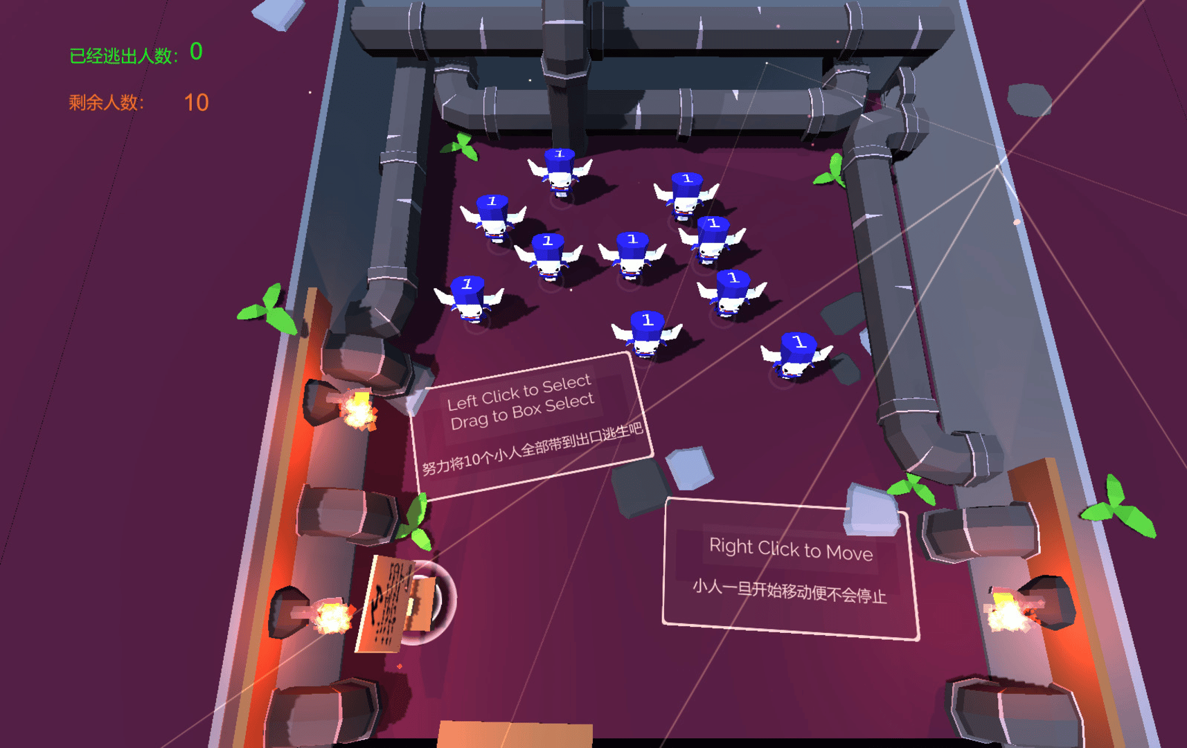 TenMinions is a strategy, adventure game. In this game, please try your best to bring the ten minions to the exit of the dungeon. On the road you need to solve several puzzles and face the threat of kinds of traps.