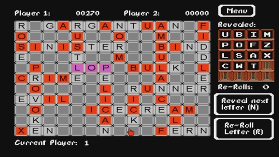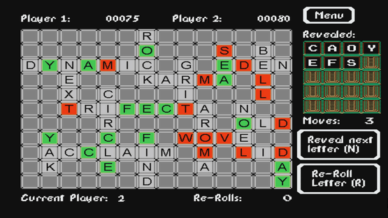 CrossTrix is a crossword based puzzle game, where you are given 20 mystery letters which are revealed individually each turn. Each player is given 3 re-rolls that they may use across the match to re-roll a letter revealed for the chance at more matches on screen.
