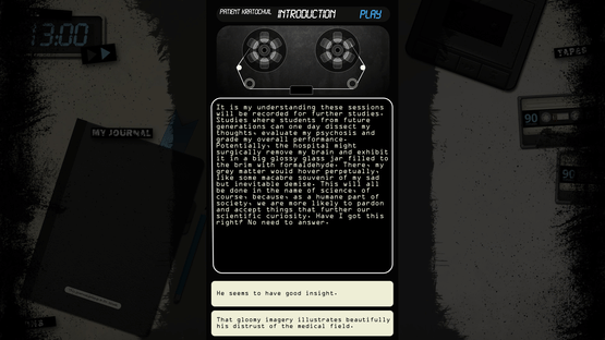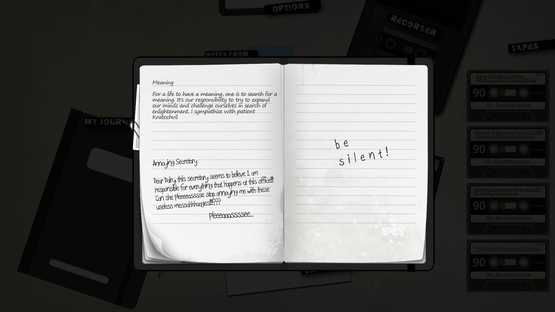 Catalyst is an interactive narrative into the world on psychotherapy. The story is told through newspaper articles, notes left by a disgruntled secretary, unwelcome letters, audio tape recordings and a unique journal that evolves throughout the game based on the player's own insightful analysis.