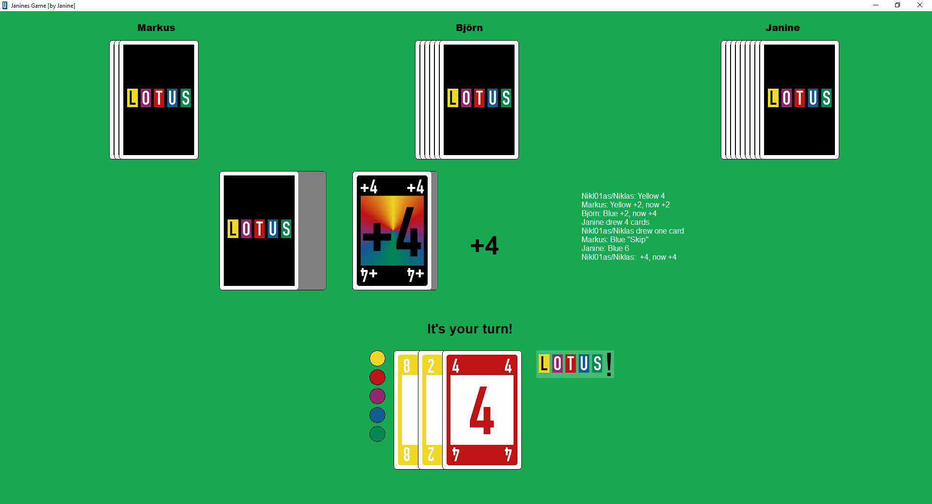 A very basic implementation of a shedding-type card game. Play with your friends and be the best of you!
