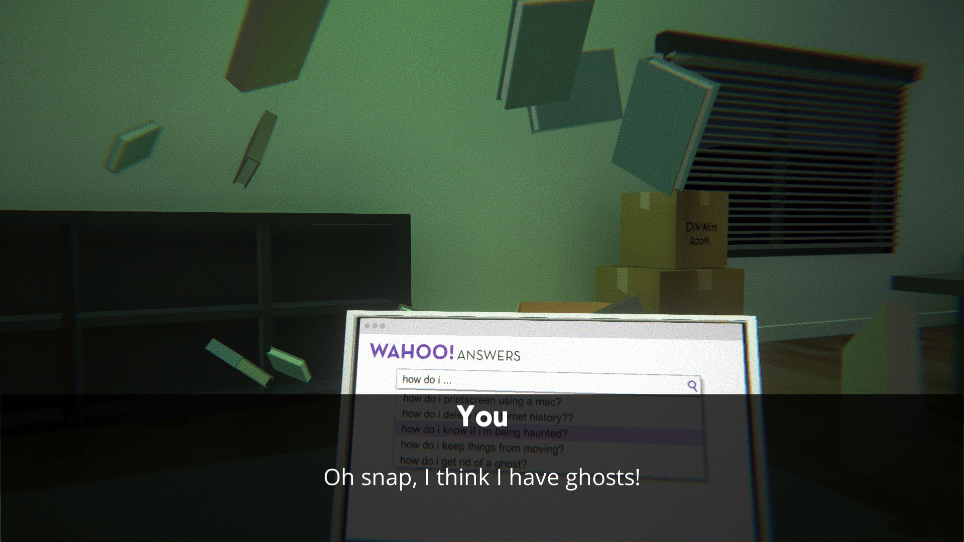 You've just moved into your new apartment but something spooky is going on! Thankfully you've got the internet to help you. Search Wahoo Answers on your laptop to figure out what's going on and maybe you can be happy in your new place.