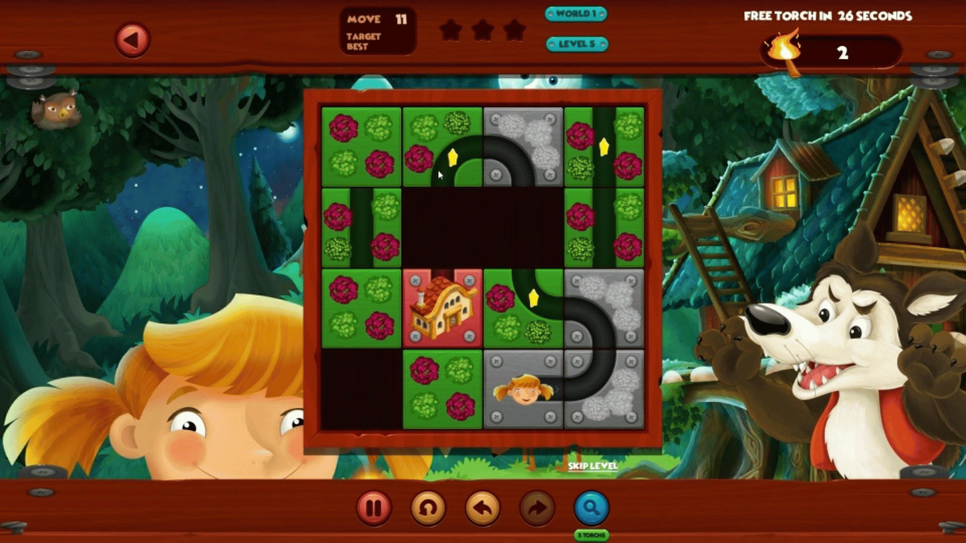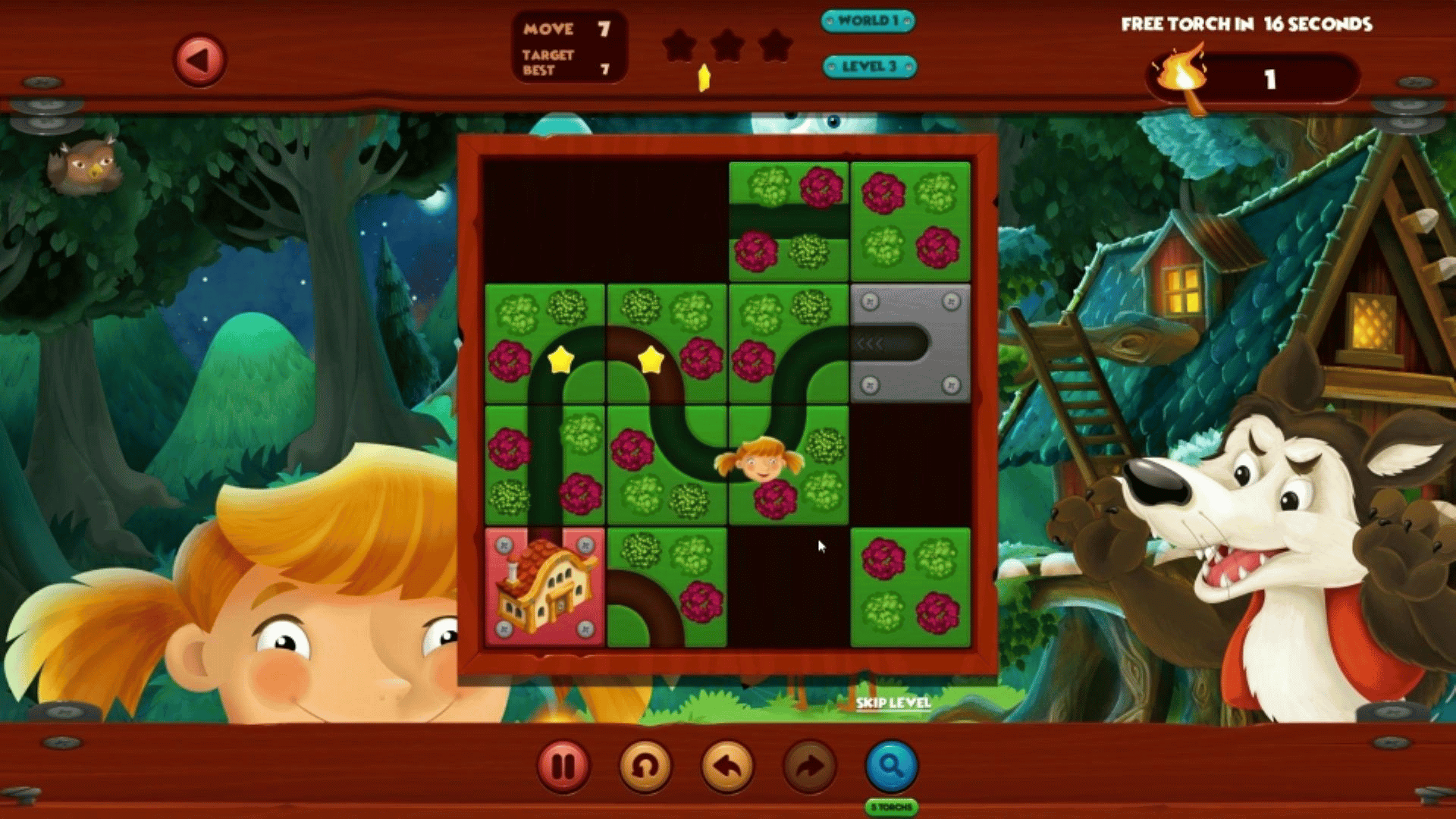 Little Red is on her way to grandmas house, but to get there she will need your help. Help her through 480 different brain teasing puzzles to find her way through the forests.