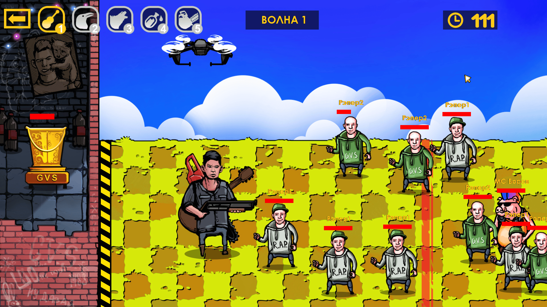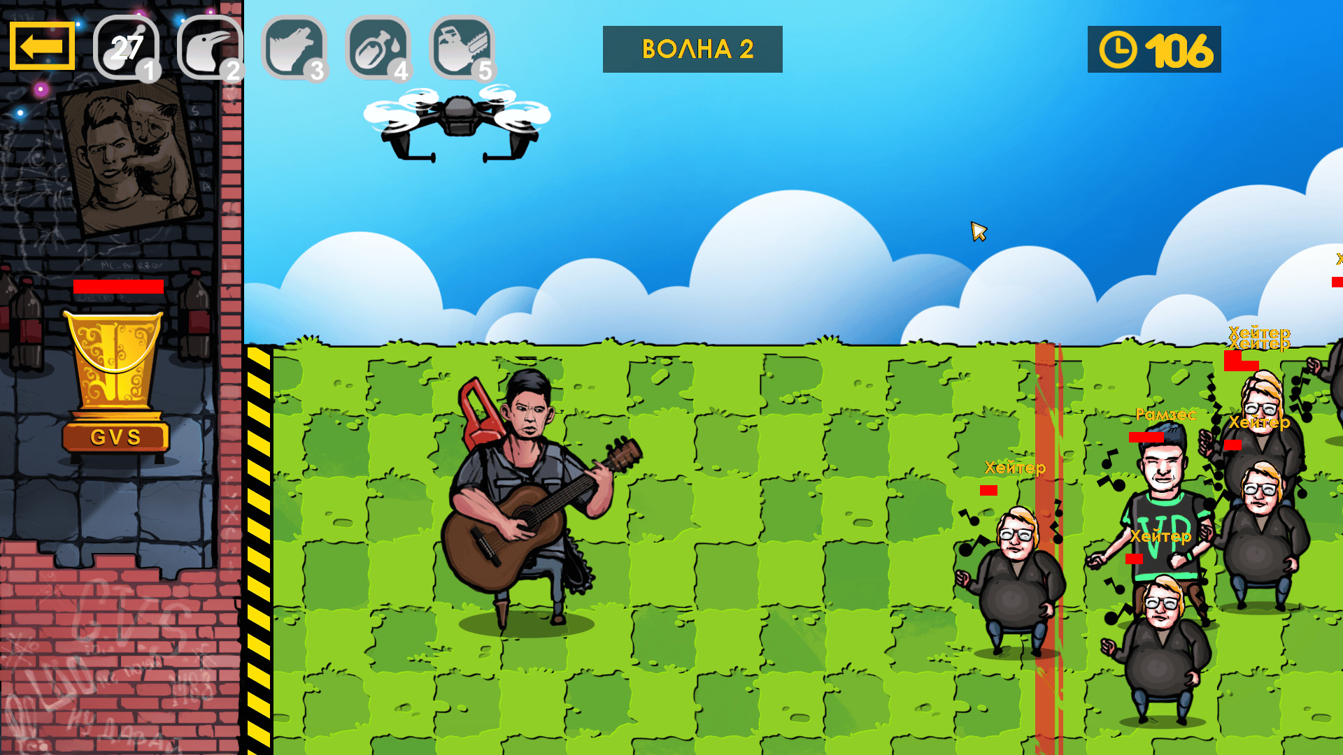 2028. Due to the global economic crisis, Valera’s grandfather’s garage is attacked by many enemies who are trying to capture the hero’s golden bucket. Help Valera to repel the attacks of enemies and defend the most valuable thing for him.