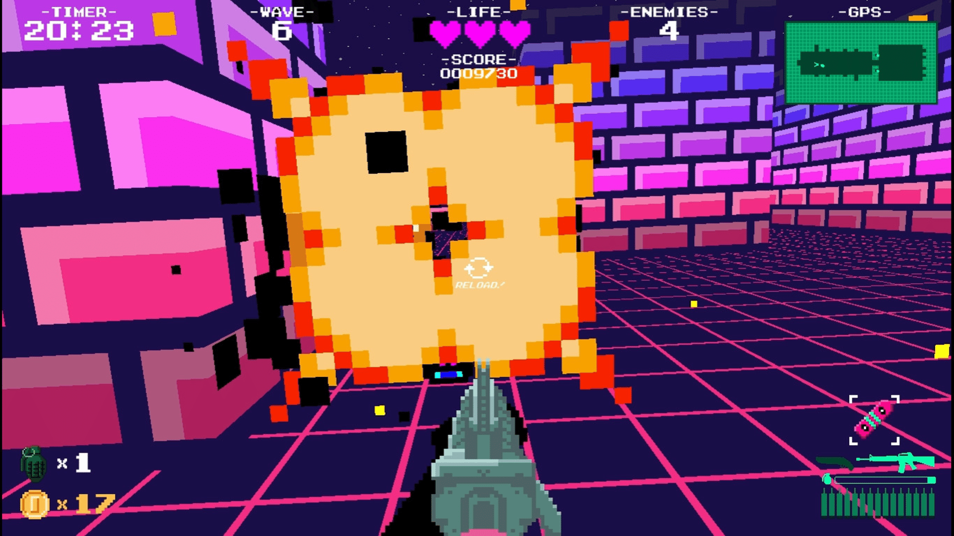 Virtual Wave is a fast paced 80's Retro 8-bit FPS Roguelite. Progress through the different themed levels of the campaign deleting enemies, collecting loot, unlocking weapons/items at the shop, finding secrets and eliminating a boss at the end of each level.