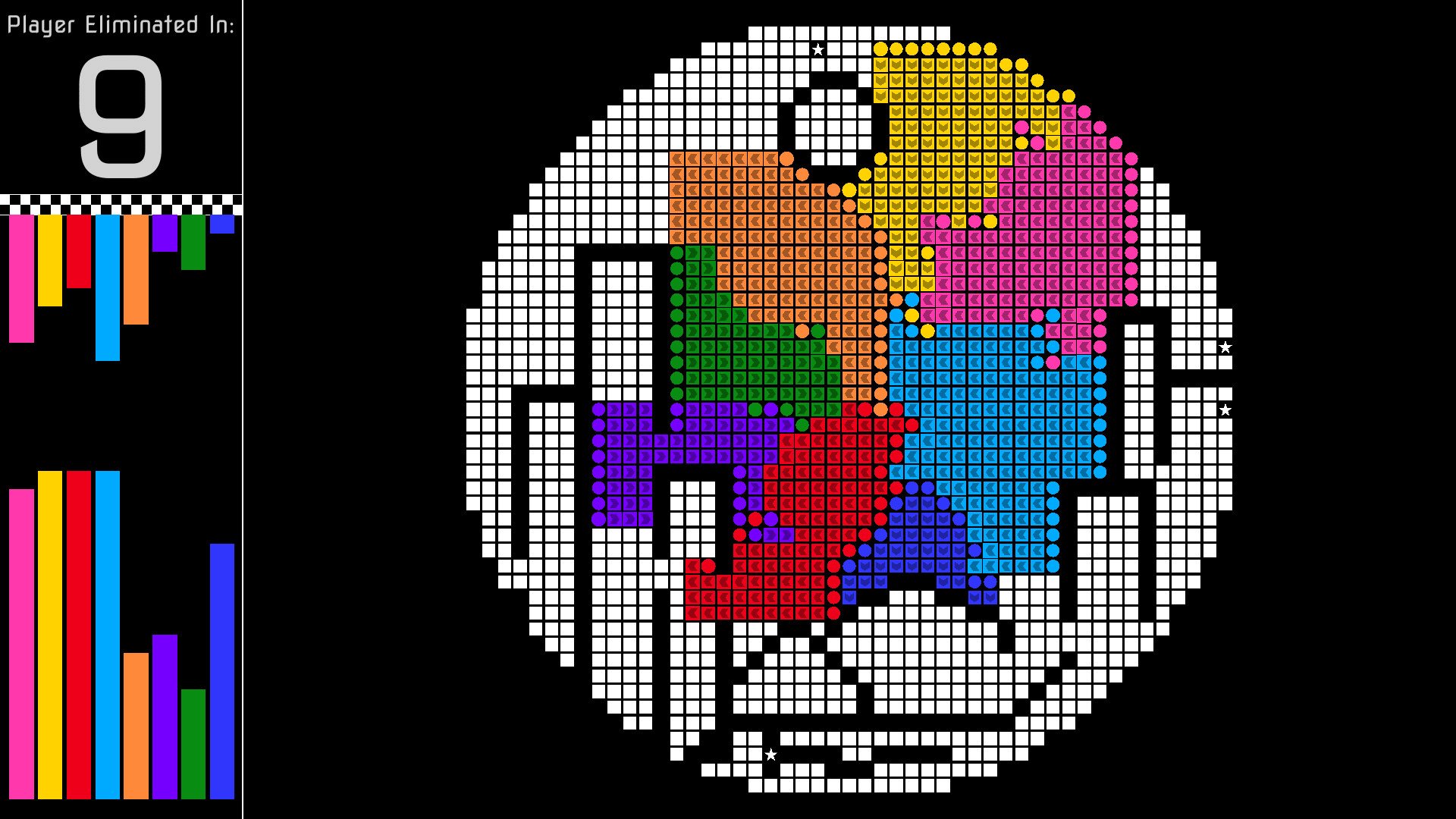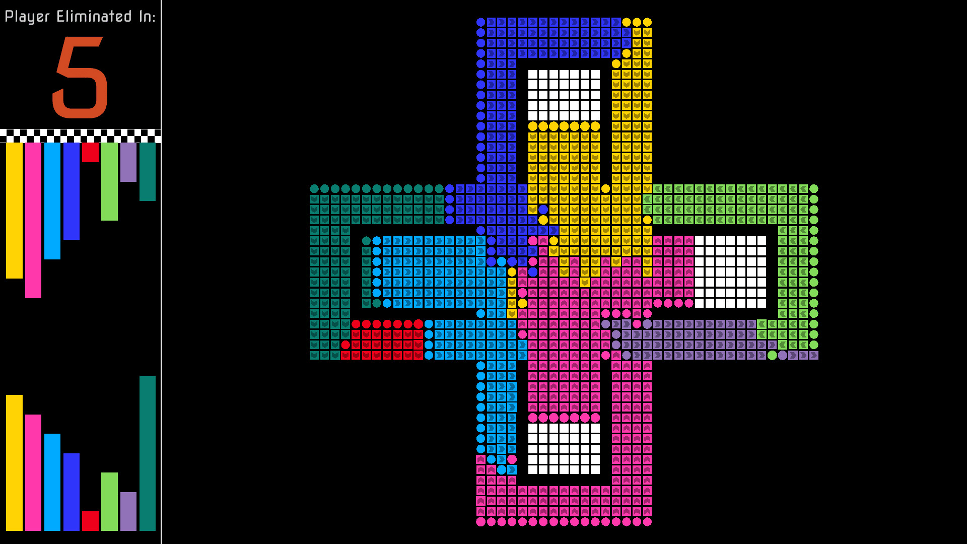 Local 8 player strategy! Expand your territory and be the last square standing! Simple controls for casual friends and deep strategy for gamers.
