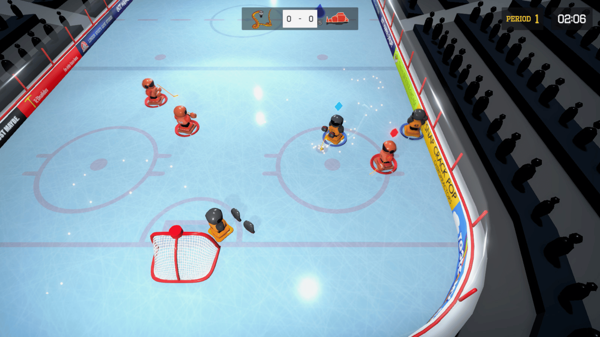 3 on 3 Super Robot Hockey, how hockey should be played. No rules. Just smash, bash, and trash your opponent and score!