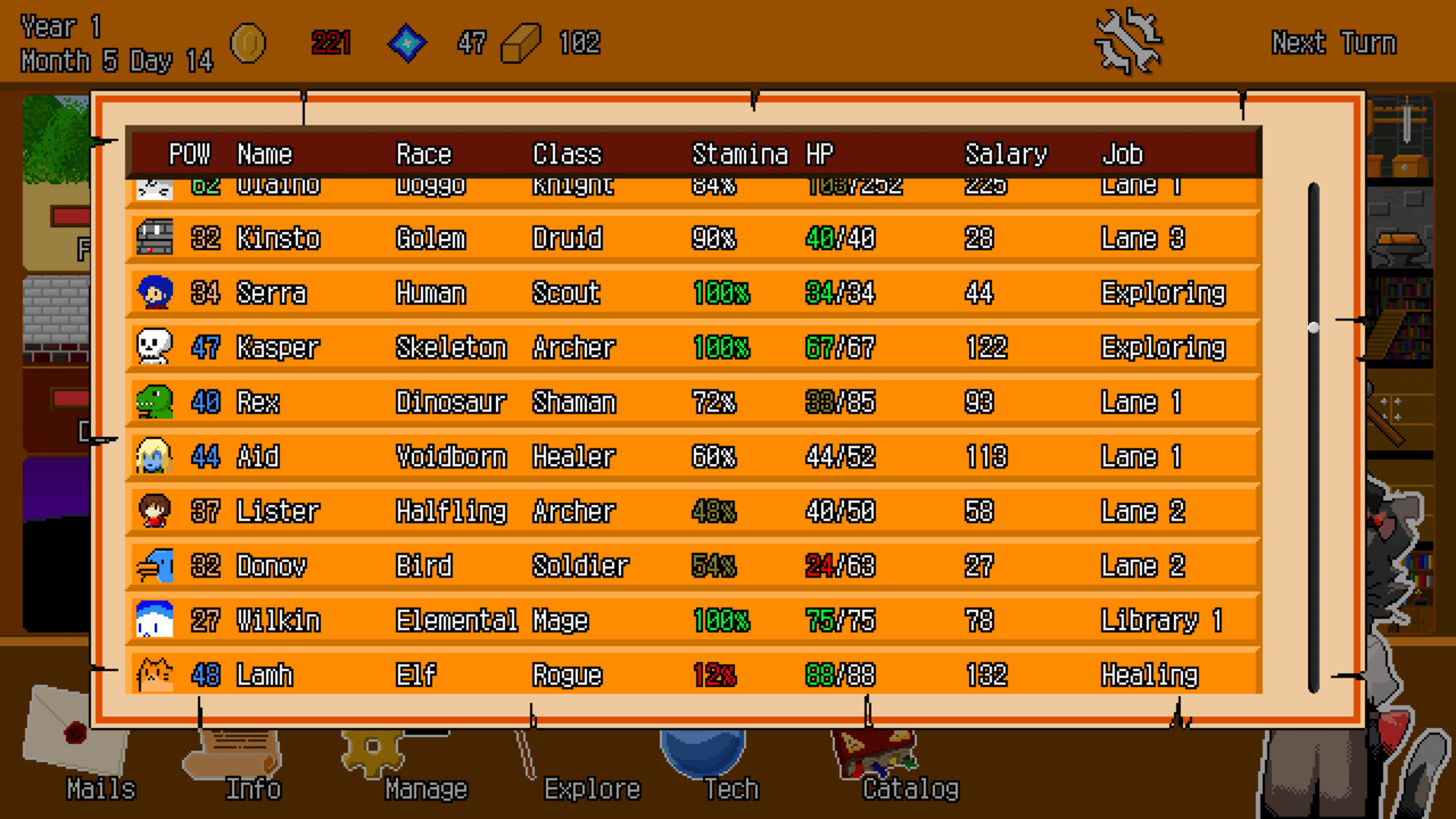 Take over a small dungeon that no adventure is interested in as a new manager. You'll start with almost nothing and recruit minions, accumulate money, construct facilities, develop technology, explore the realm, have the dungeon's name up, conquer other dungeons and win the championship of the Dungeon League.