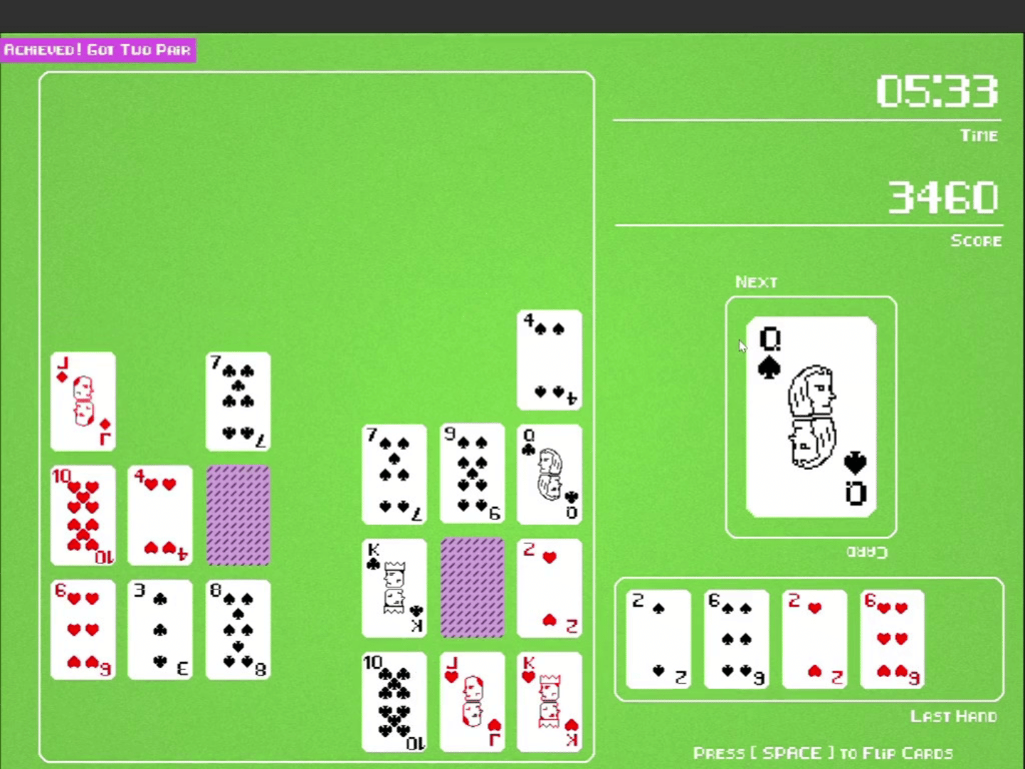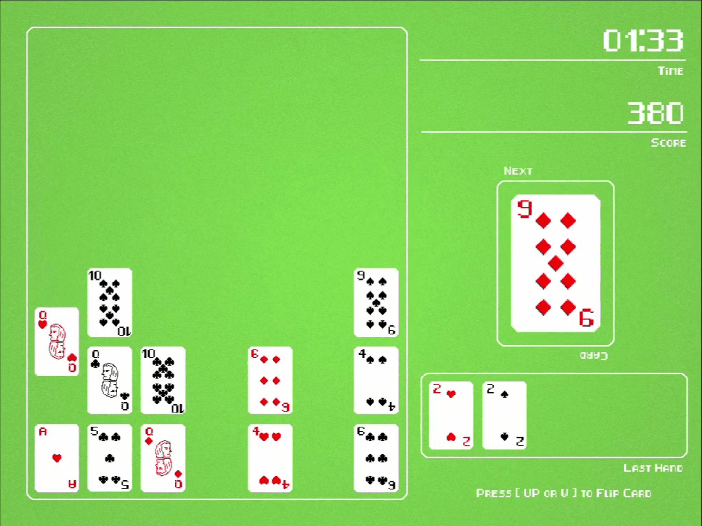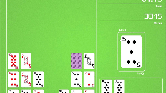 A combination of poker and a certain falling blocks game. Match cards into pairs, straights, flushes, and more as they drop from the top. Beat your high score before the board fills up!